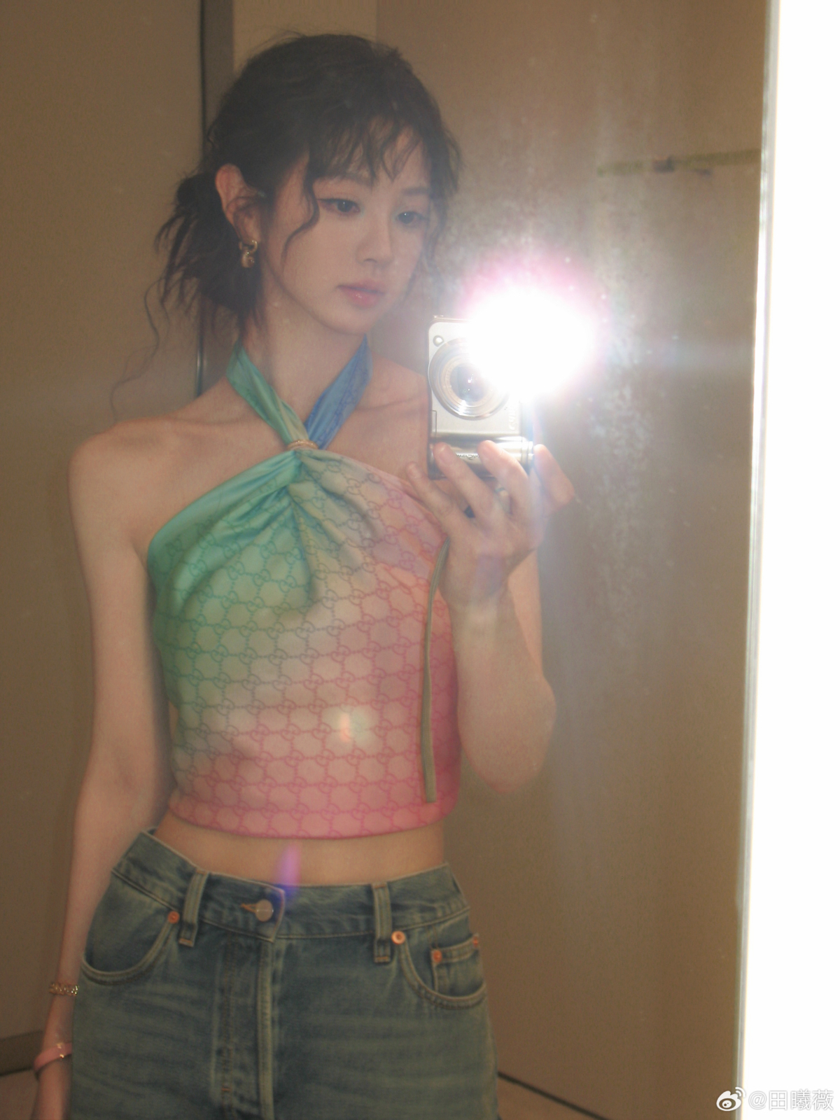 以甜美初戀形象備受矚目的田曦薇,私下穿搭同樣延續她一貫的青春氣息,日前她於社群曝光的造型中,巧妙將GUCCI漸層絲巾打造成繞脖交叉式上衣,展現設計感十足的創意穿法,同時襯托出俐落直角肩與精緻鎖骨線條。