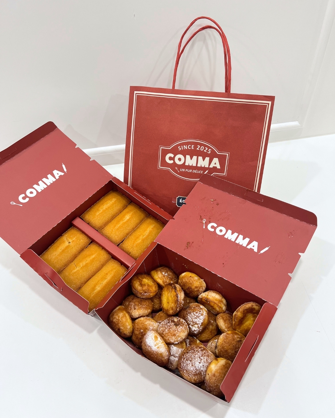 人氣蛋塔品牌COMEME推出的全新品牌COMMA,近期悄悄在信義商圈開設限時快閃店,從焦糖泡芙、費南雪到法式曲奇,每一款都好吃得讓人停不下來,一不小心就默默吃光整盒。