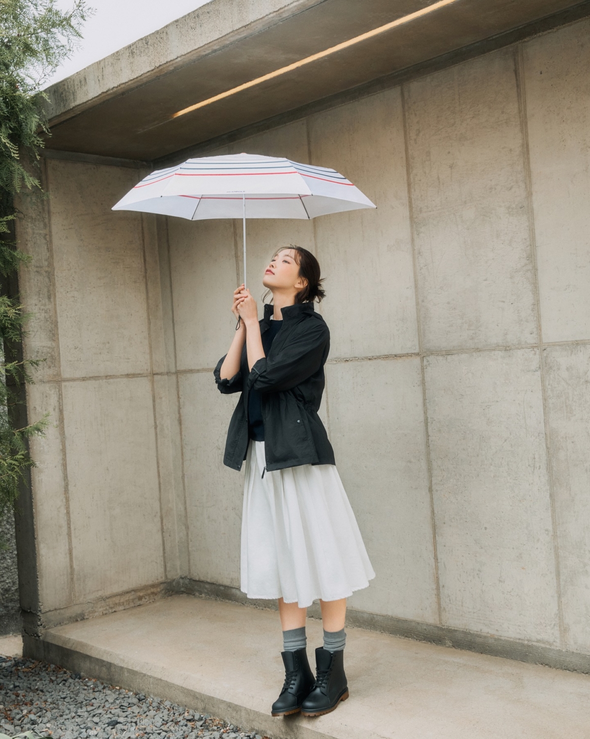 和所有顯高單品一樣,高腰設計是中長A字裙不可或缺的元素。選擇腰線落在肚臍以上,甚至更高一點的款式,能將視覺重心上移,瞬間拉長下半身比例。這樣一來即使是中長裙,也能輕鬆打造出「胸部以下都是腿」的逆天視覺效果,讓整體身形看起來更修長。
