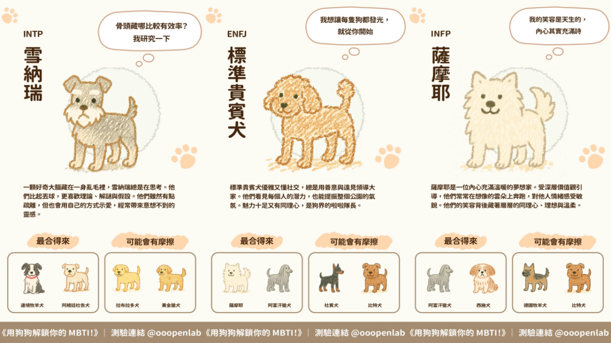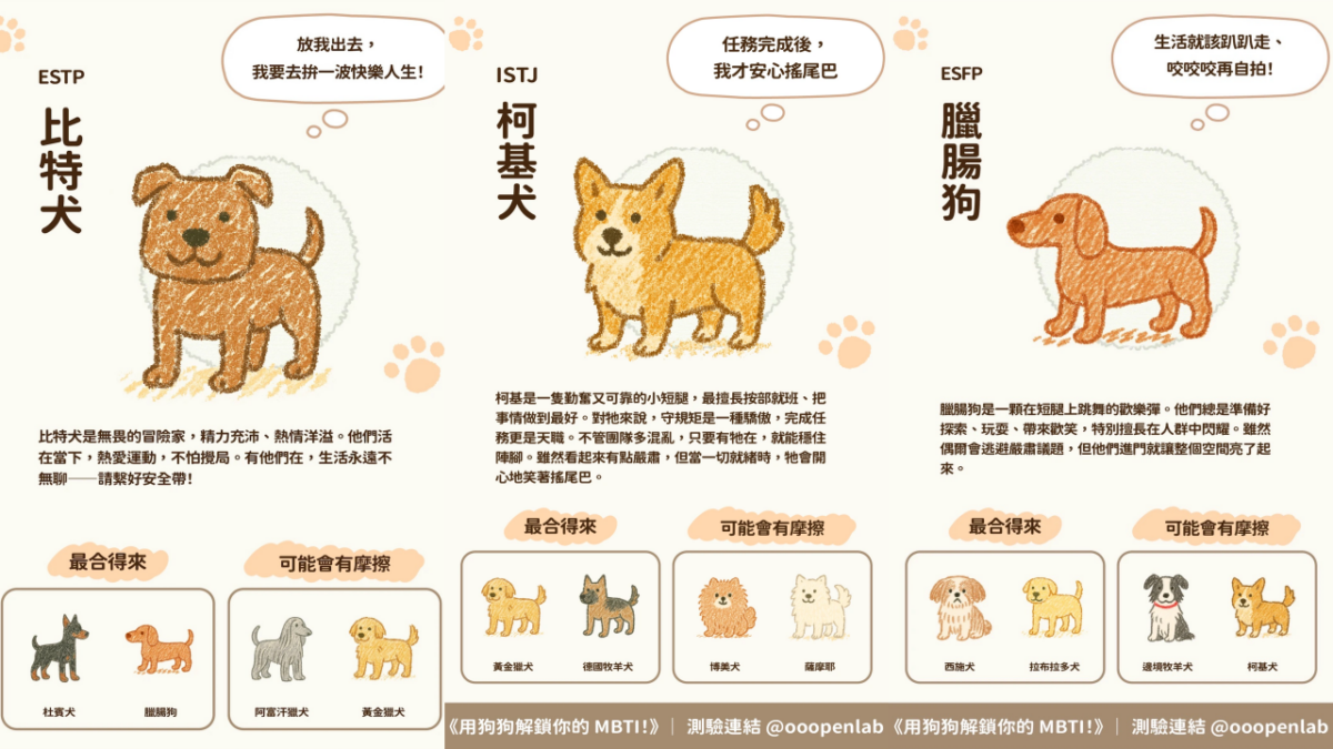 Photo from 用狗狗解鎖你的MBTI心理測驗網頁截圖