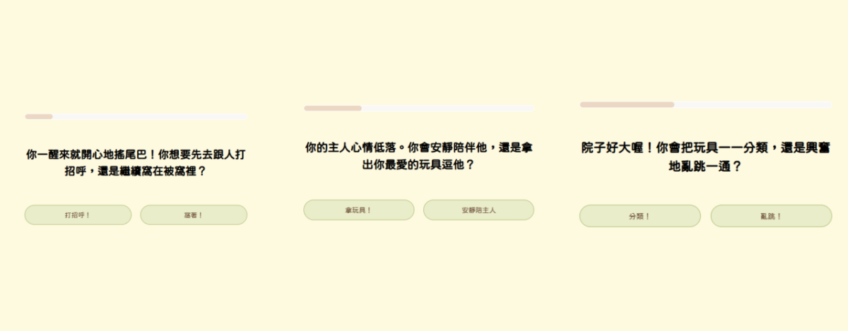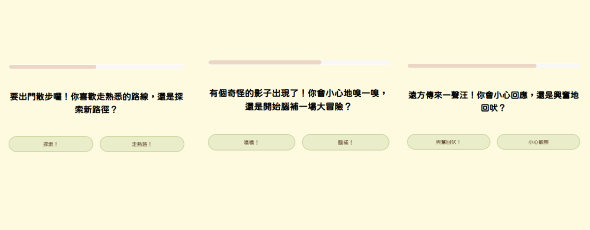 這款「用狗狗解鎖你的MBTI」心理測驗,以可愛的全新角度探索自我性格,透過生動的狗狗形象題目,幫助你輕鬆辨識自己的MBTI人格特質~想像你是隻有人養的小狗狗的話,每天生活的心境會是如何? 觀察主人的心情你會如何應對呢?喜歡無憂無慮的慵懶享受還是想盡可能探索周遭事物?根據自己的想像做出選擇吧!