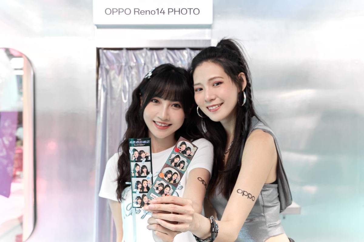 空間內打造「絢彩DVD牆」、「有意思冰菓室」、「風格拍貼機」三大區域,實際體驗以Reno14 系列最高前後5000萬高畫素四鏡頭、同價位唯一3.5倍潛望式長焦鏡頭,以及AI 閃光影像、AI 表情替換等多種有趣的影像功能,讓每一次快門都能拍出專屬風格大片,實現從日常取材、即時構圖到成片分享的創作體驗,解鎖影像創作的有意思日常!