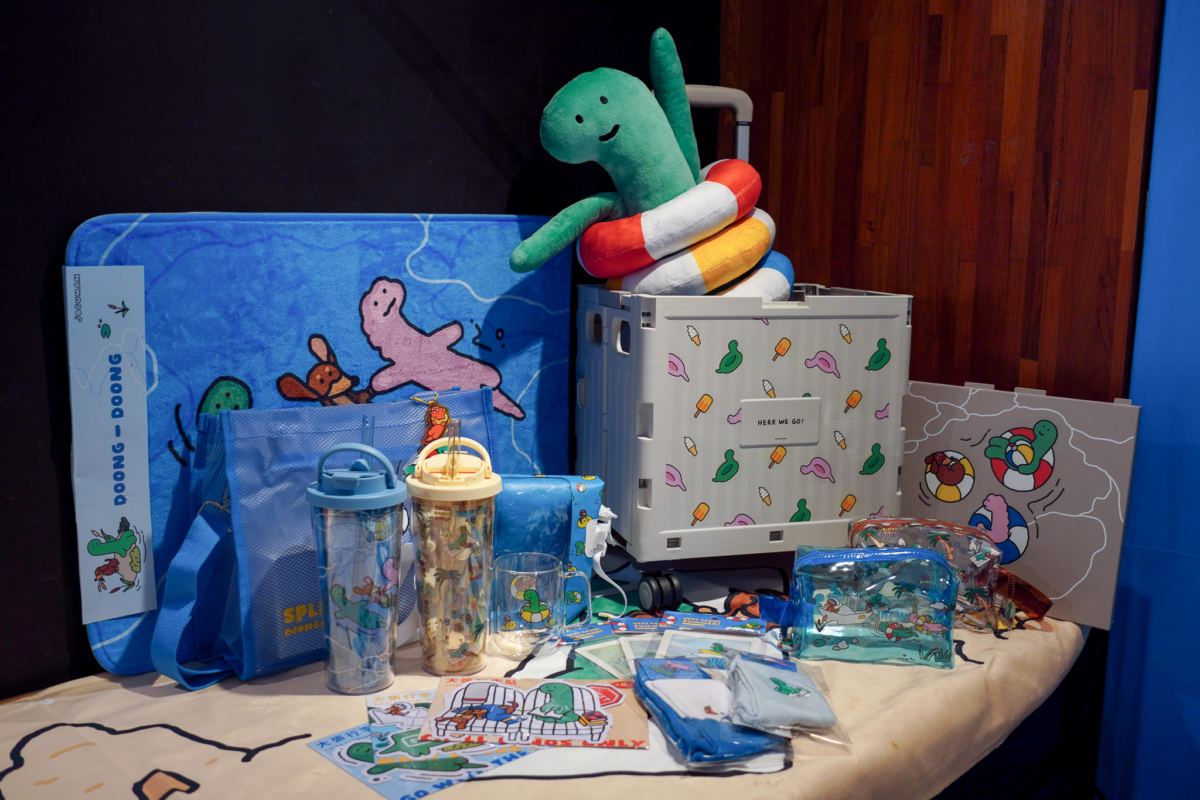此次展覽限定快閃店集結超過25款全新JOGUMAN主題商品,療癒度與實用度兼具。包含全新設計的50公分「JOGUMAN絨毛玩偶-夏日款」、三層泳圈設計的BRACHIO,以及超可愛的「JOGUMAN充氣卡套」與「透明網格肩包」等等,透明材質、清涼色調、手腕織帶等設計細節,都是以夏日漂流為靈感製作,每款商品都成為夏日出遊的完美搭配。