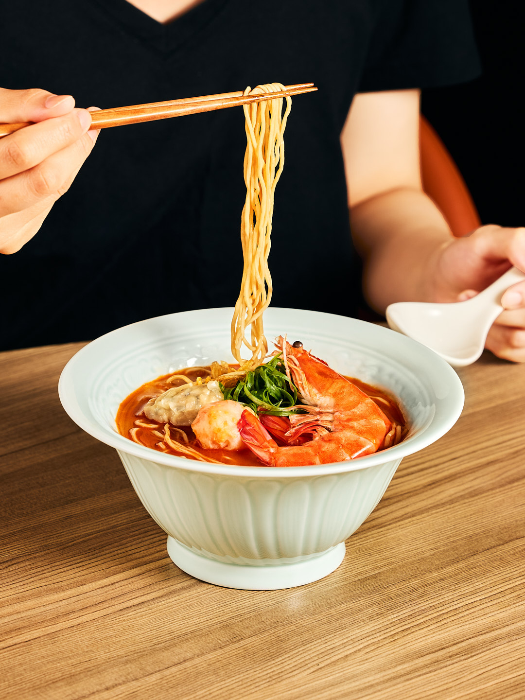 一碗麵、一場宴!對【樂蝦拉麵】來說,專業從來不只端出一碗麵這麼簡單,而是如同操辦滿漢全席,每個細節審慎以待。從湯底到配料、從麵條到小菜,無不講究。