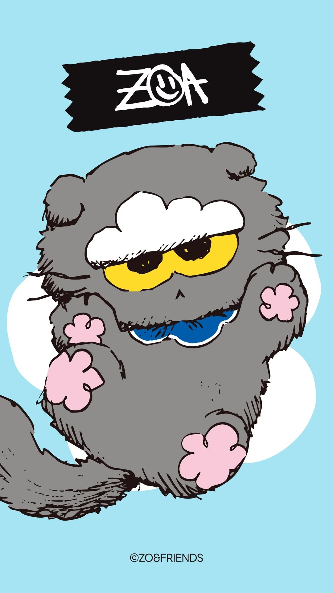 擁有蘇格蘭摺耳與曼赤肯混血基因的ZOA,過去就時常出現在GD的社群版面,在這次「ZO&FRIENDS」的世界觀設定中,他是一隻從雲朵中誕生的小貓,腳掌會留下一道道像魔法般的彩色腳印,個性總是慢半拍、神情一臉淡定,尤其喜歡窩在各種箱子中。