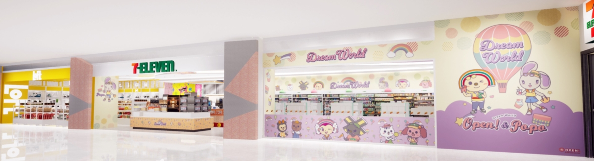店內整體空間設計以LOFT經典的明亮黃色為基調,一眼望去相當亮眼!而緊貼旁邊的7-ELEVEN則以OPEN將角色為主題,融入粉黃、粉紅、粉紫等柔和色系搭配讓配色看起來相當量協調粉嫩,還有可愛的角色燈箱可以合照打卡。