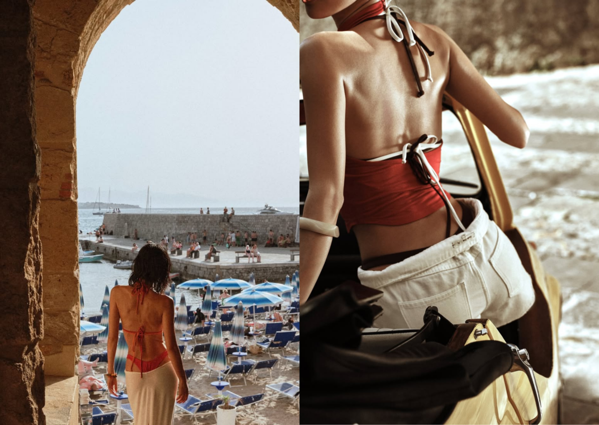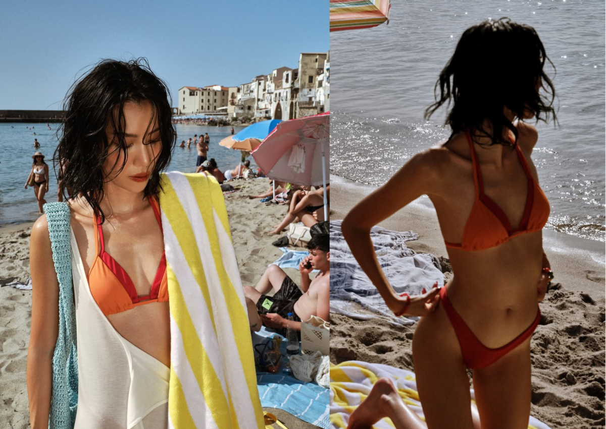 在海島度假,比基尼必定是你最常穿的單品,更是自由、放鬆的象徵,從日間的陽光到夜晚的涼風,海邊的比基尼搭配輕薄的罩衫或外套,便能輕鬆過渡,讓你從白天的沙灘活力轉換到晚餐時的優雅隨性。