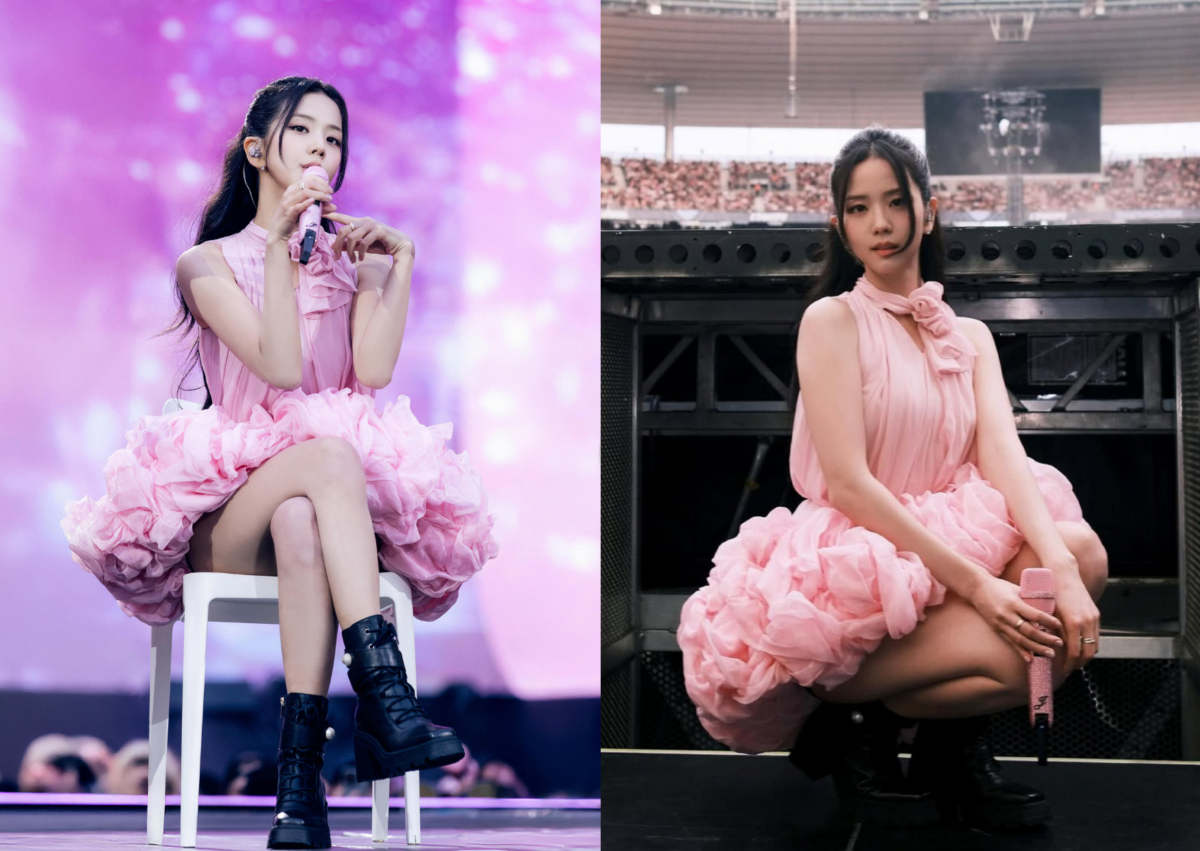 Dior 品牌大使 Jisoo 來到巴黎「DEADLINE」全球巡迴演場會時,穿著 Dior 為她特別訂製的黑、粉兩套訂製服,分別是黑色絲質襯衫、薄紗短裙造型,上身的皺褶感非常俐落溫柔,加上裙擺處若隱若現的飄逸感;以及一套甜美可愛的粉色澎裙造型,裙擺像玫瑰花般展開,完美詮釋 Black 和 Pink 兩種風格氛圍。