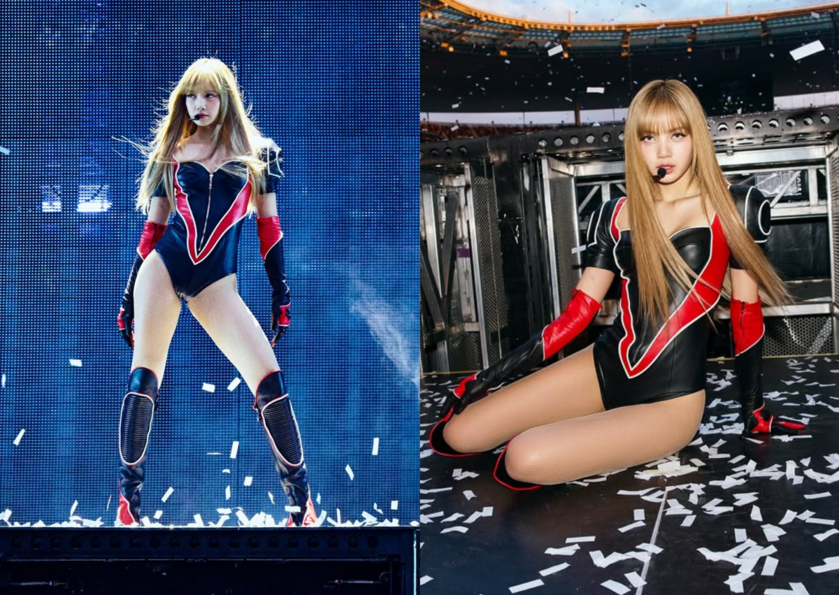 提到舞台最火辣、性感的造型,誰能比得過 LALISA?巡迴來到巴黎站,勢必得穿上自家代言品牌,Lisa 以女戰士之姿搶眼登場,穿著 Louis Vuitton 黑紅配色訂製賽車裝,胸前到腰間的巨大 V 字型呼應品牌細節,搭配同色調手套、長靴,火辣秀出屁股蛋和高挑身材。