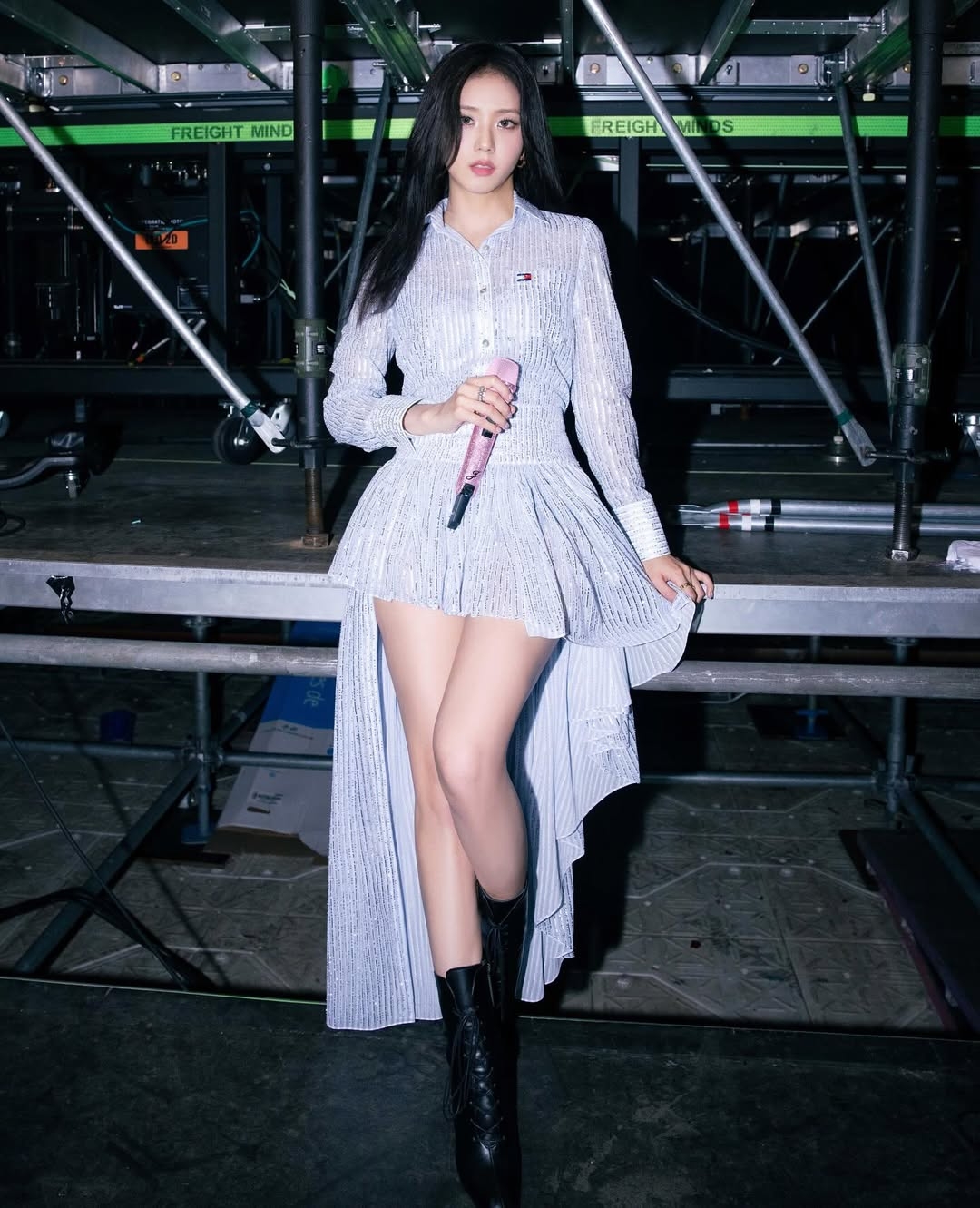 身為 Dior 小公主的 Jisoo,當然備受最高規格待遇,新任創意總監 Jonathan Anderson 首個女裝系列發表之前,Jisoo 就搶先穿了 3 套他的女裝設計。洛杉磯演出首次穿著 Dior 特別訂製的粉色蝴蝶結上衣,搭配同款縐褶短裙與 Dior 靴款,這套造型更耗時 Dior 工坊共 100 小時製作完成。