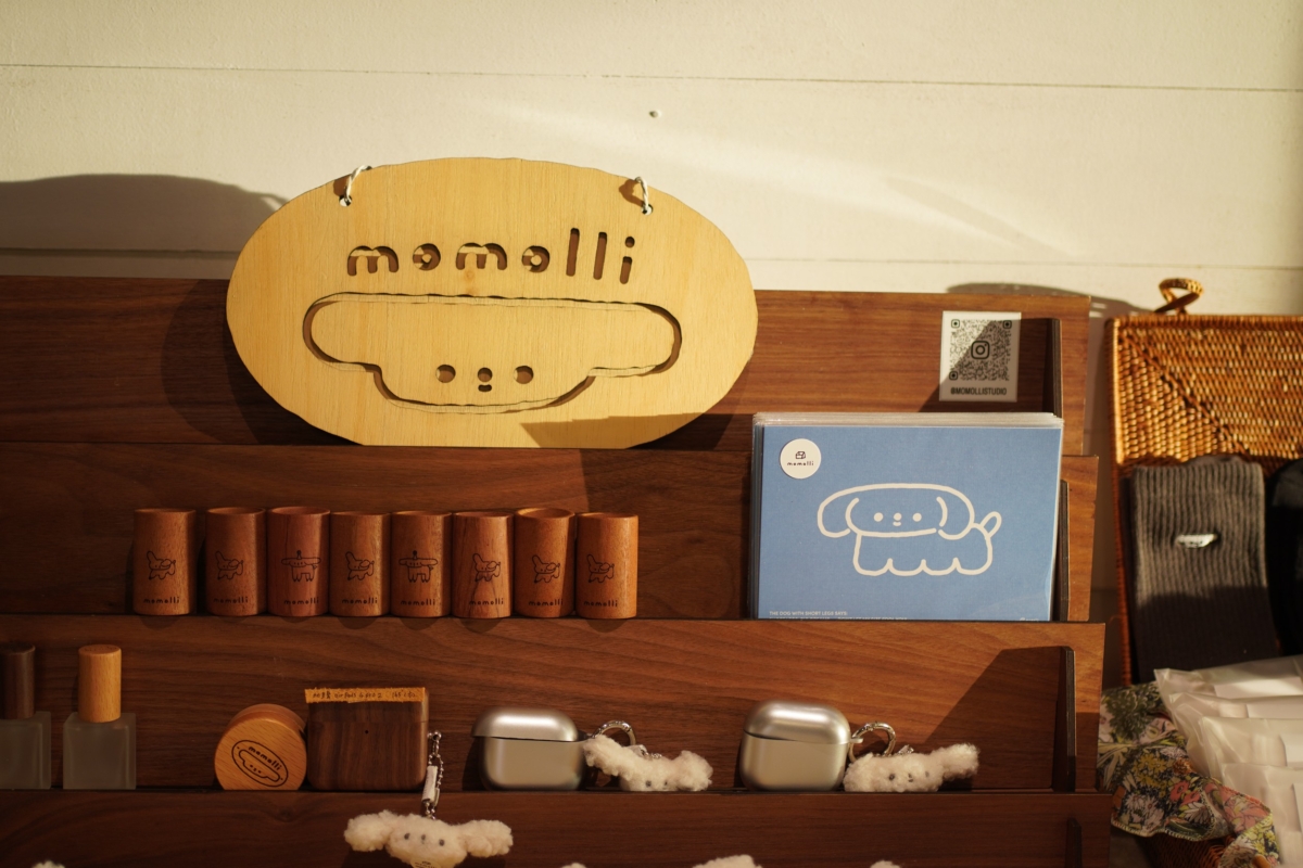 走進 momolli 就像走入一間清晨的雜貨鋪,這裡的主角是 「台式飯糰狗」和「油條小兔」,從第一針到最後一針,全由作者親手縫製。