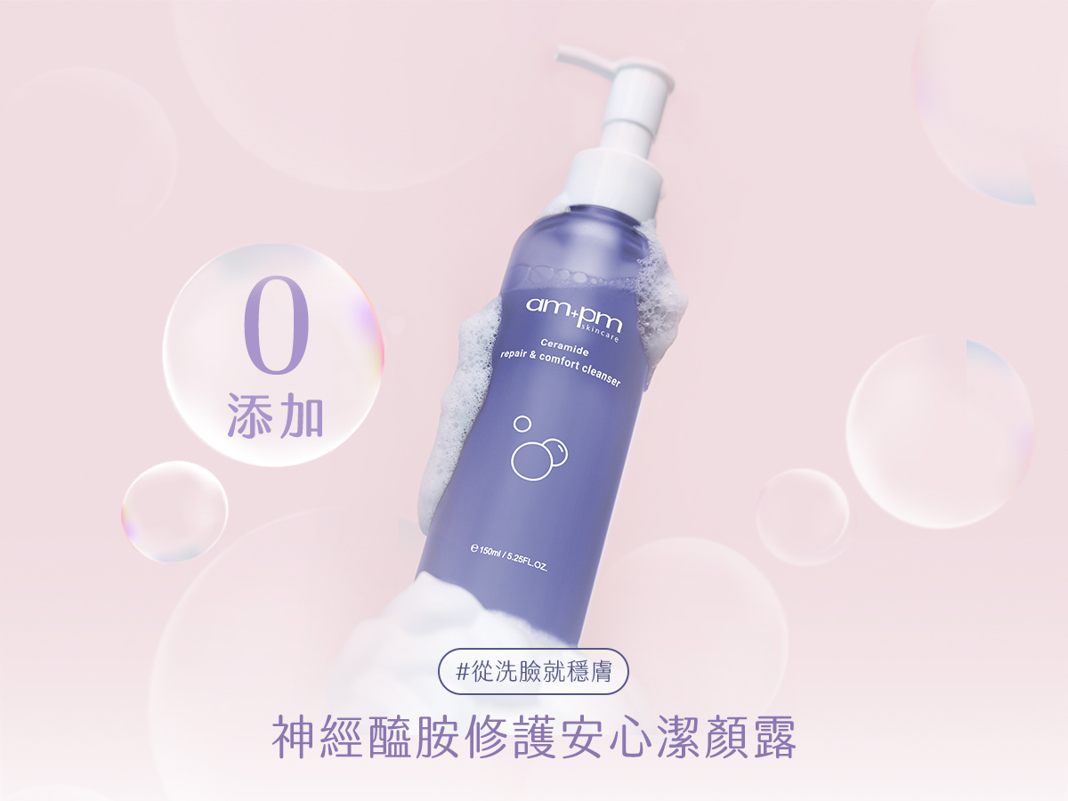 ampm 深知敏弱膚質的需求,推出全新 「神經醯胺修護安心潔顏露」延續品牌明星商品「10%神經醯胺修護精華」(#小紫瓶)的核心概念,將精華級成分融入洗顏日常,以零添加的純淨配方,讓洗臉不再只是「帶走髒污」,而是「幫肌膚補強」,從清潔開始安心守護。