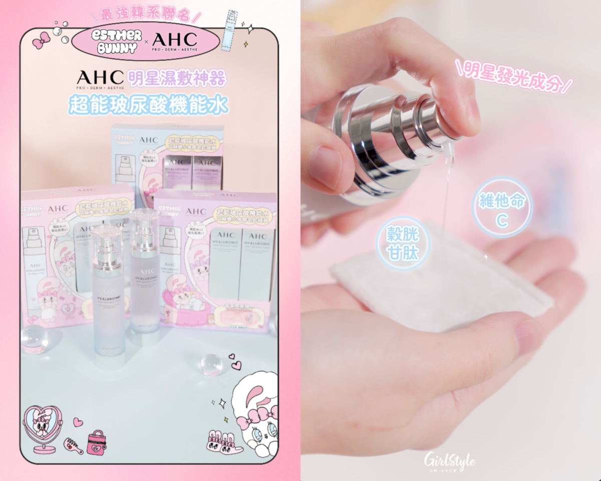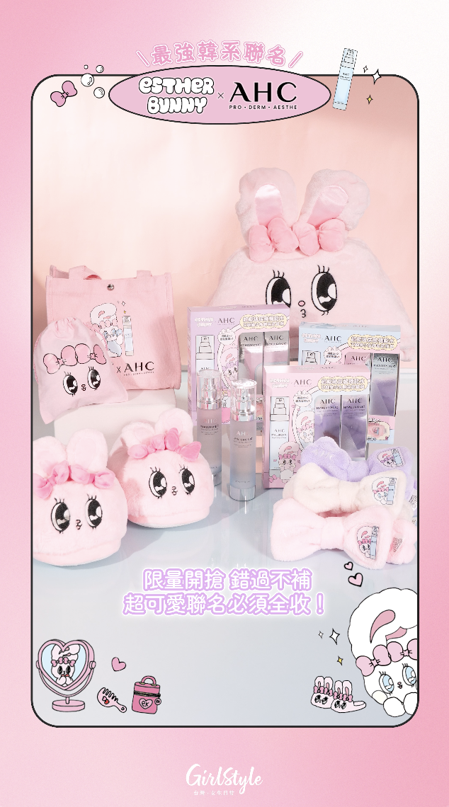 這麼可愛的組合,要收幾組都願意!韓國連續8年榮登NO.1**抗老霸主的 AHC,打造夢幻韓系強強聯手超高話題!與台日韓人氣都超級旺,而且只要出現在韓國 Olive Young一推出就會馬上完售的夢幻角色「Esther Bunny 艾絲樂小兔」聯名啦!這波聯名不只保養濕敷神器應有盡有,連療癒周邊也全都一口氣全推出,完全是攻佔粉絲少女心的超強陣容!小編這裡溫馨小提醒,等等會介紹多款超級可愛的組合和周邊,如果不想讓自己選擇障礙發作的話,不用糾結問朋友~買就對了!一律建議全部都帶回家!