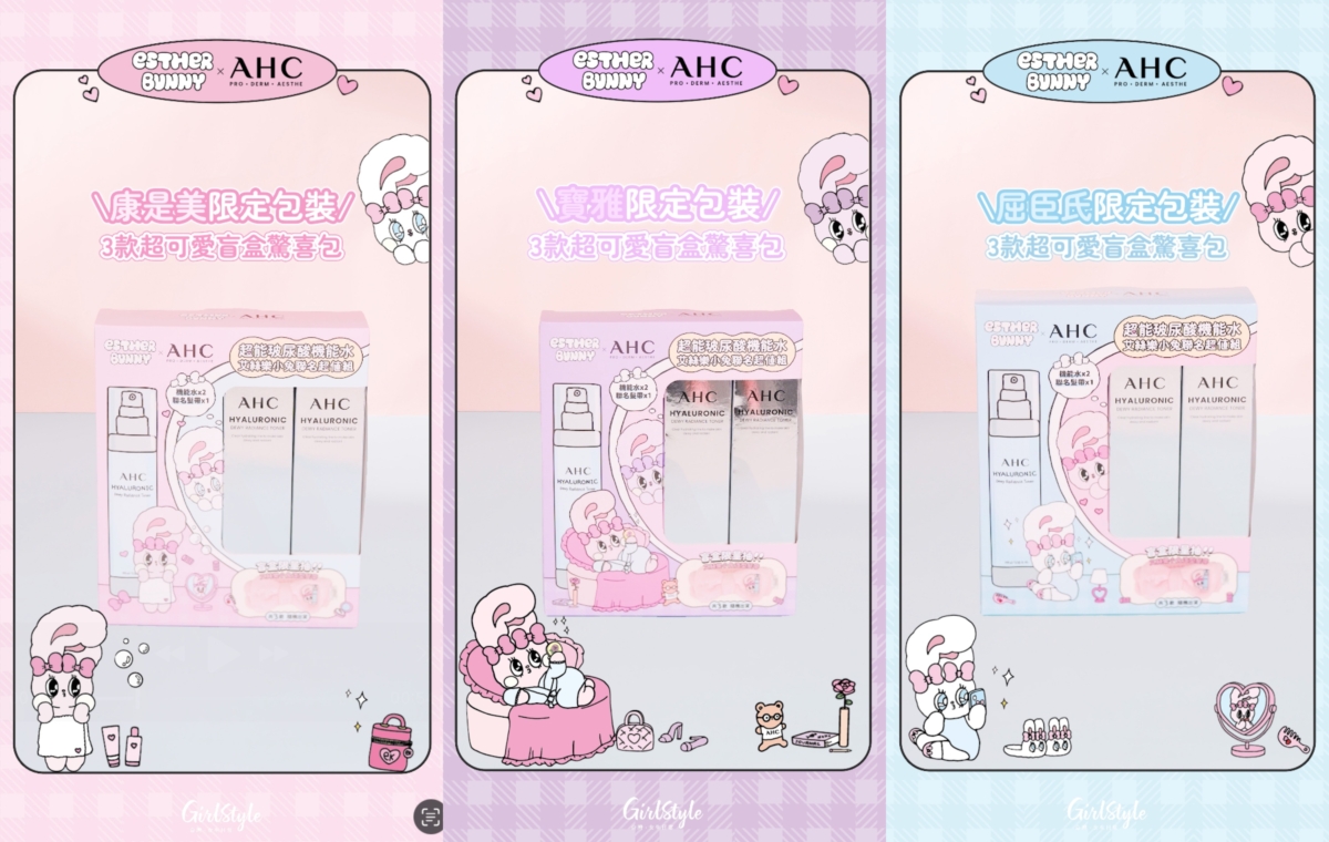 這次AHC準備的聯名組合真的超用心,分別在屈臣氏、康是美、寶雅三大通路各自推出不同限定包裝,光是外盒就讓收藏控尖叫了!但最讓人心動的當然非AHC精心準備的「驚喜盲盒」莫屬啦!