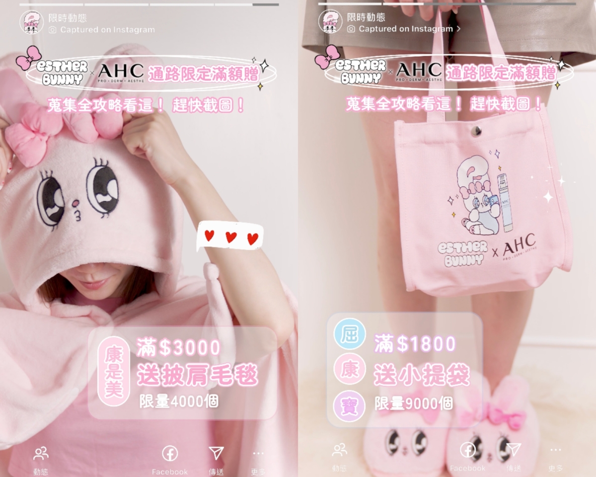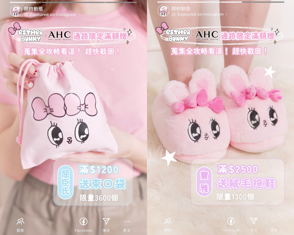 AHC x Esther Bunny 這波滿額禮也都可愛的超犯規!重點是AHC全館商品都可以湊滿額~超適合囤貨一波入秋保養品!小編已經先幫眾粉絲整理好攻略了,各位可以鎖定自己的最愛直接出門帶回家!