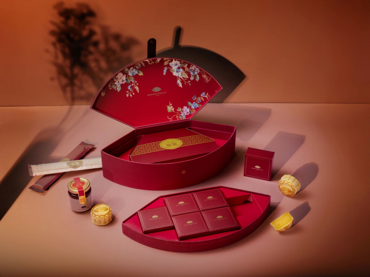 如果說中秋禮盒裡也有「時尚精品」等級,那台北文華東方絕對是代表。今年一共推出四款限量禮盒,禮盒包裝設計靈感來自酒店經典的歐式摺扇,結合布面質地與淡彩繪風,華麗又帶著溫潤質感,就像一件藝術品!