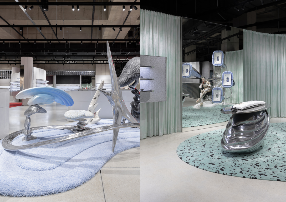 首次在 Haus Nowhere 亮相的 Nuflaat,是 Gentle Monster 家族中最新的成員,以「DRESS YOUR TABLE(裝飾餐桌想像)」為核心,打破時尚物件與實用性之間的界線,將日常的餐具與生活用品提升到藝術層次,設計上充滿了非典型的美學,例如那款搶眼的紅色「指甲」造型杯,在正式發售前就已經引起社群話題。