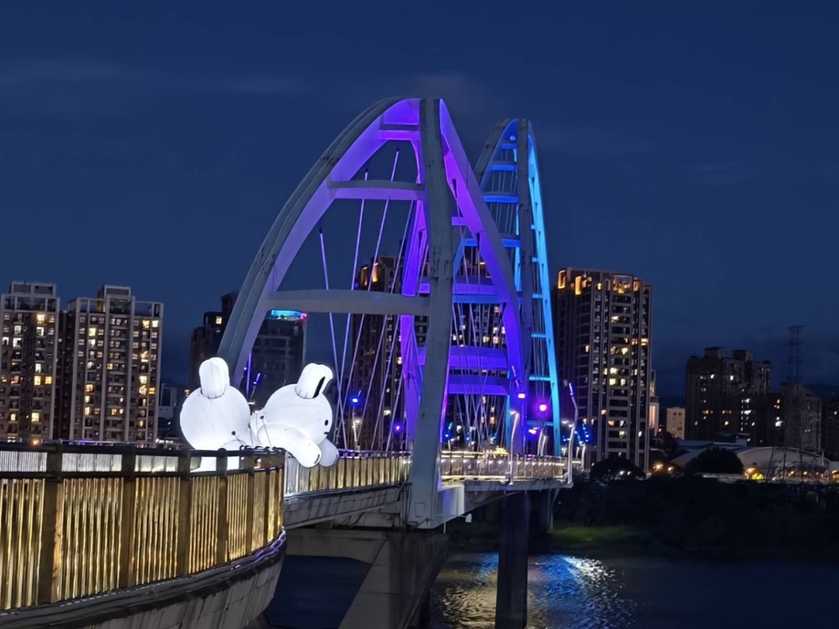 走上新月橋,可以看到一隻兔兔Q慵懶地趴在橋邊,靜靜凝望著遠方的天色變化。在它身旁,還有另一隻兔兔Q默默坐著,彷彿在無聲地陪伴著彼此與所有路過的旅人~不趕時間也沒有要去哪裡的話,不妨放慢腳步與它們一起享受當下,悠閒放空吧♡