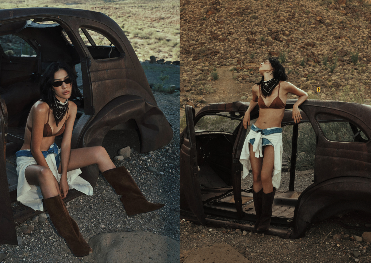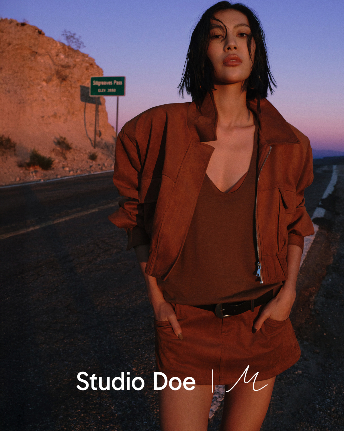 本季 Studio Doe × Molly 全新系列以大地色系、麂皮和針織等多元材質,描繪旅人精神與自由態度,將「沒有終點的旅程」轉化為秋日穿著的力量,Route 66 象徵的不只是道路,更是自由與探索的象徵,公路上沿途經過無邊的沙漠、仙人掌、紅棕峽谷,沙土感的駝色、沉穩的黑色、峽谷的紅棕色、晚霞時刻的紫粉色、沙漠中植物的橄欖綠色充斥在身邊。