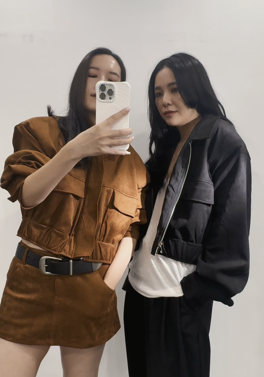 (Elva右)編輯這回試穿 Studio Doe × Molly 全新秋季系列,選擇黑色麂皮外套、白色流浪背心搭配絨面內衣,編輯 162cm/52kg 尺寸都是選擇 M(平時喜歡穿很寬鬆),整體造型完全就是我平常的穿搭 Look!私心很愛這件麂皮外套,面料柔軟舒服,尤其墊肩設計超級時髦,背心的側邊大挖空也太適合去海邊度假。