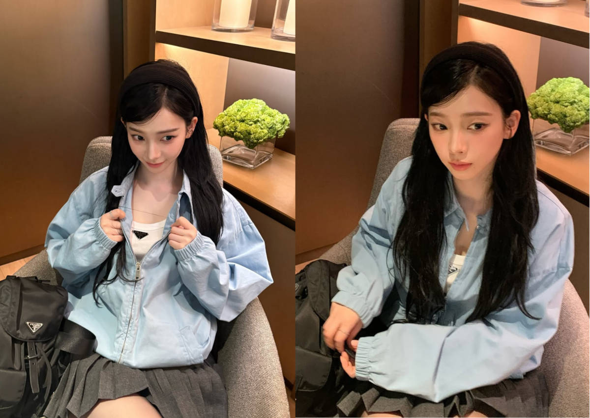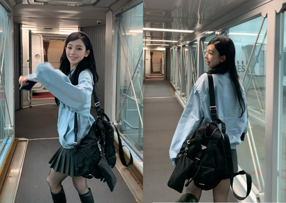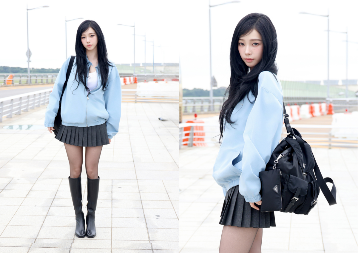 aespa Karina 機場穿搭:清新學院風