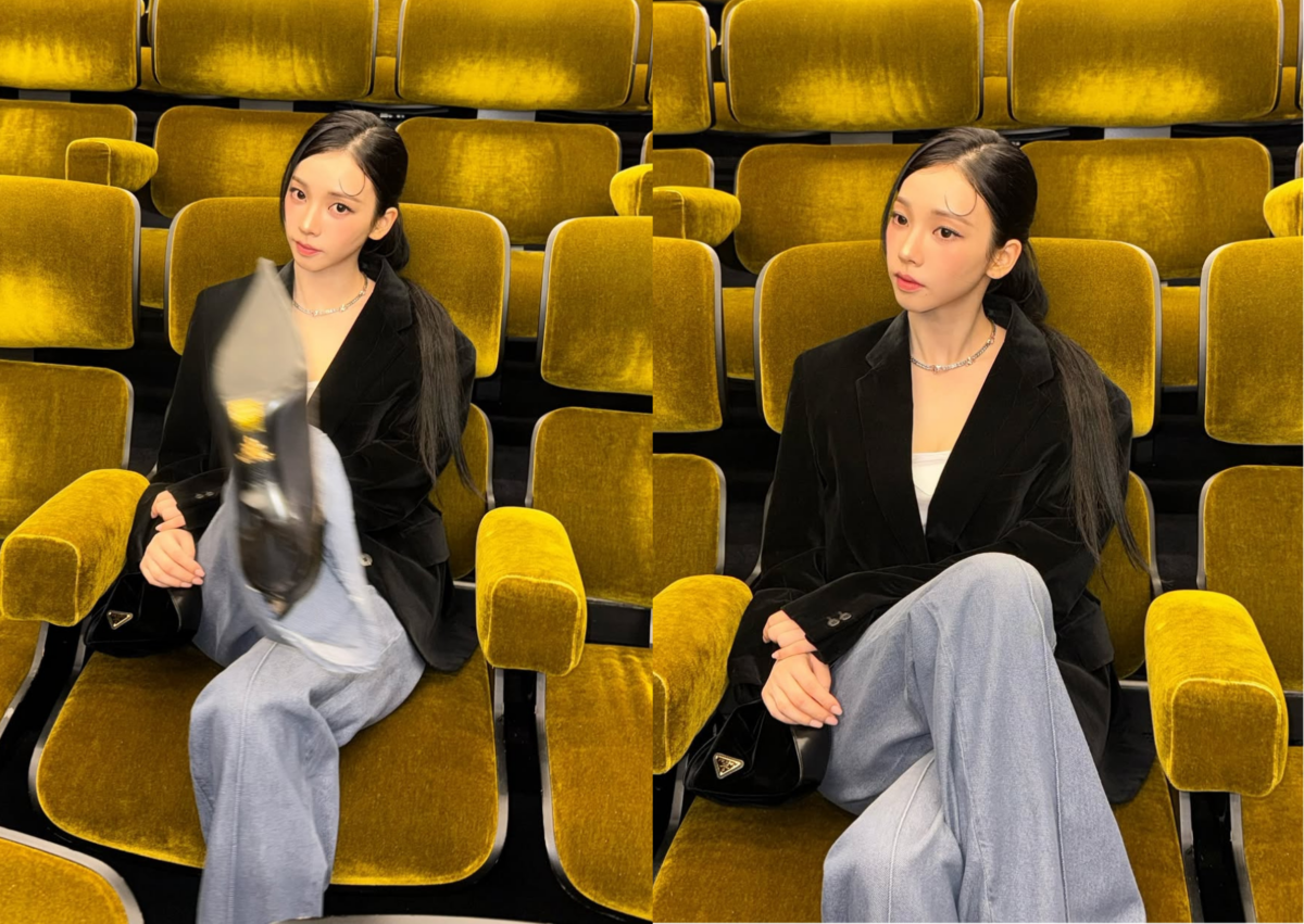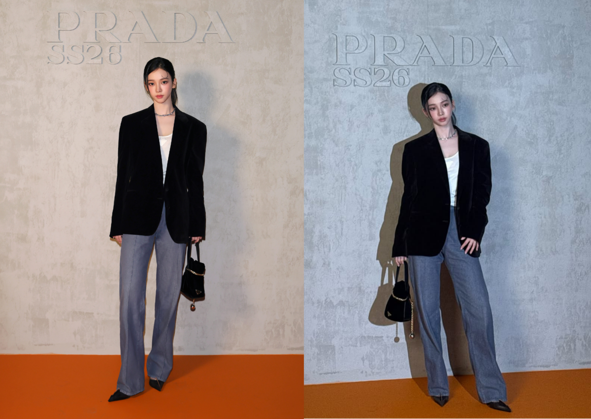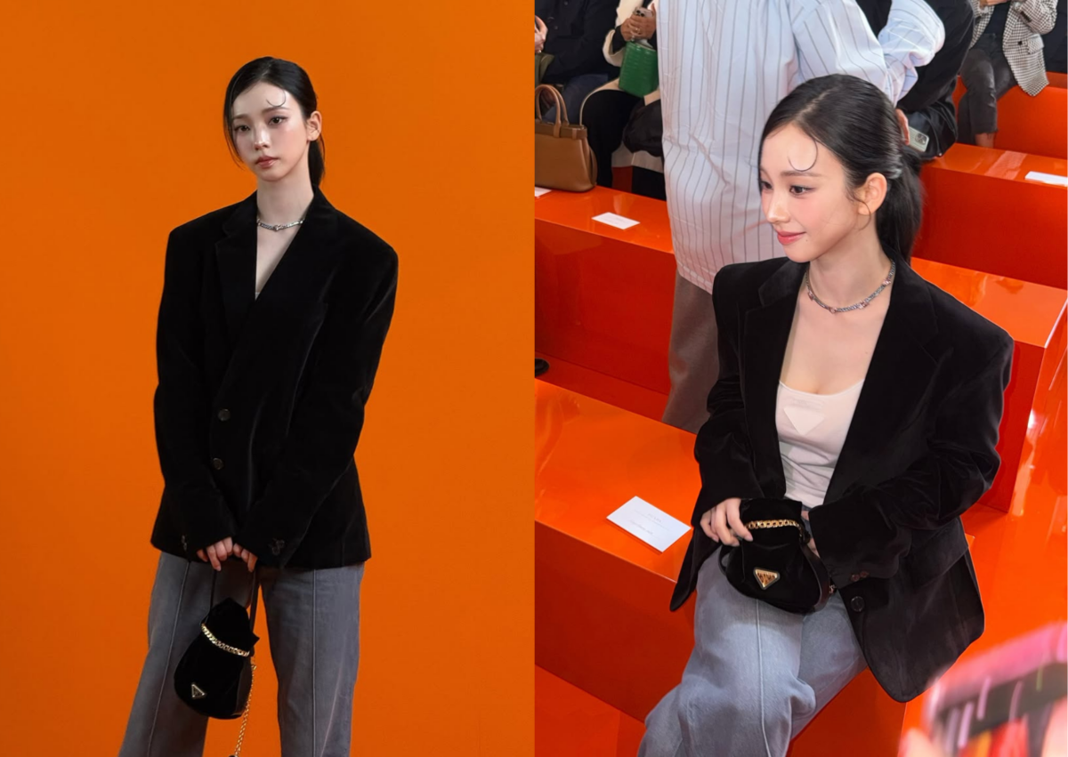 身為 Prada 全球品牌大使的卡寶 Karina,勢必得是每季時裝週的座上嘉賓啦!這回不當小公主,整體造型走一個帥氣、時髦又霸氣、不同以往的樣貌登場,身穿 Prada 天鵝絨修身西裝外套搭配白色三角標誌針織背心和牛仔褲,腳踩尖頭高跟鞋,手拿 Prada 皮革手袋,梳起俐落低馬尾,呈現幹練女強人氣場。