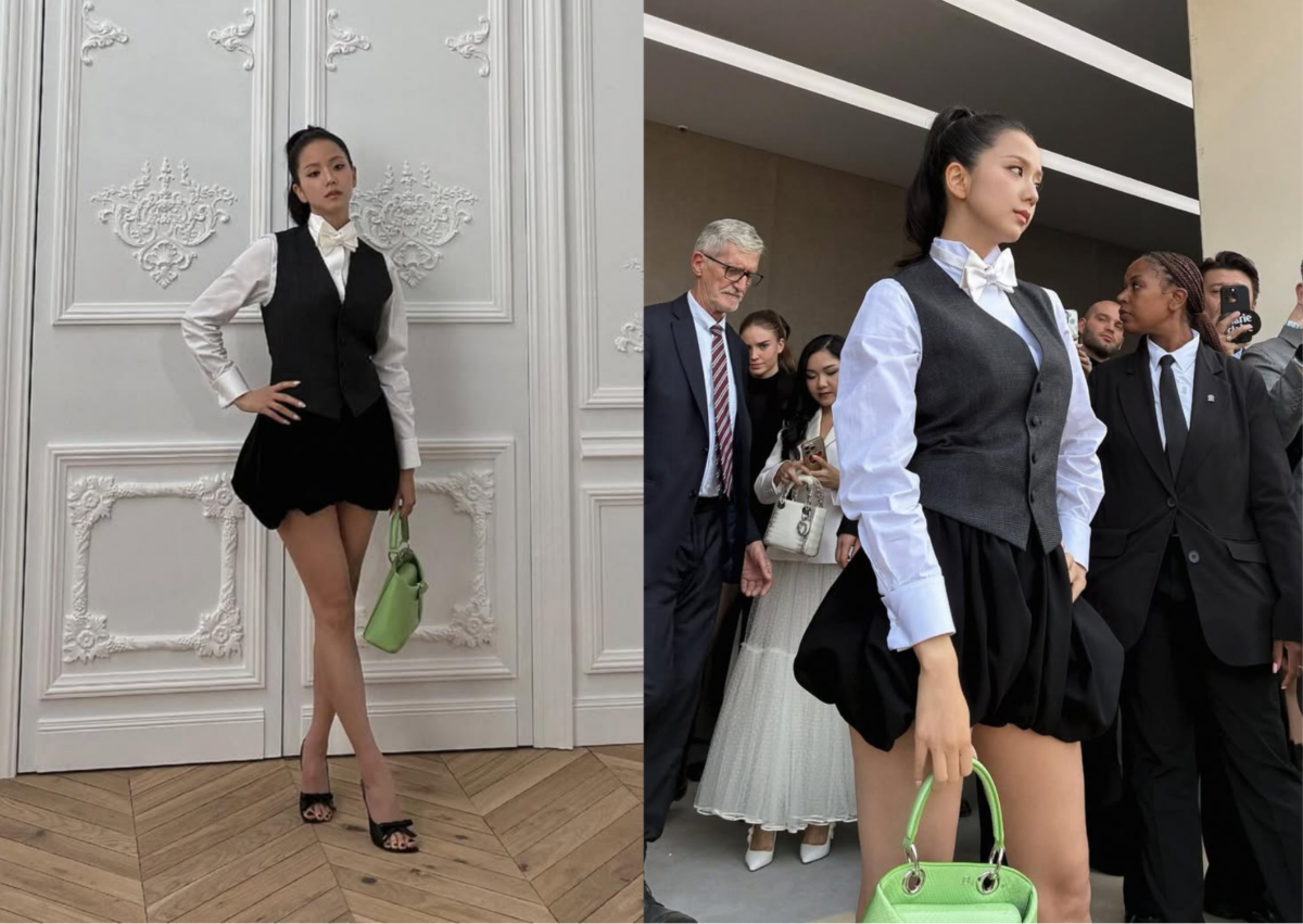 日前 Dior 剛釋出 Jisoo 時裝週試裝照,穿上一襲淺綠色浪漫禮服,正當大家都期待著大秀當天會以什麼樣的小公主造型出場時,Jisoo 反而以一套 Dior 黑白西裝造型現身,白襯衫和深灰色背心簡約又俐落,蓬蓬裙、蝴蝶結和高跟鞋注入了些優雅俏皮感,手上的亮綠色手提包款,則為整體造型注入一抹亮色系,輕鬆成為鎂光燈焦點!
