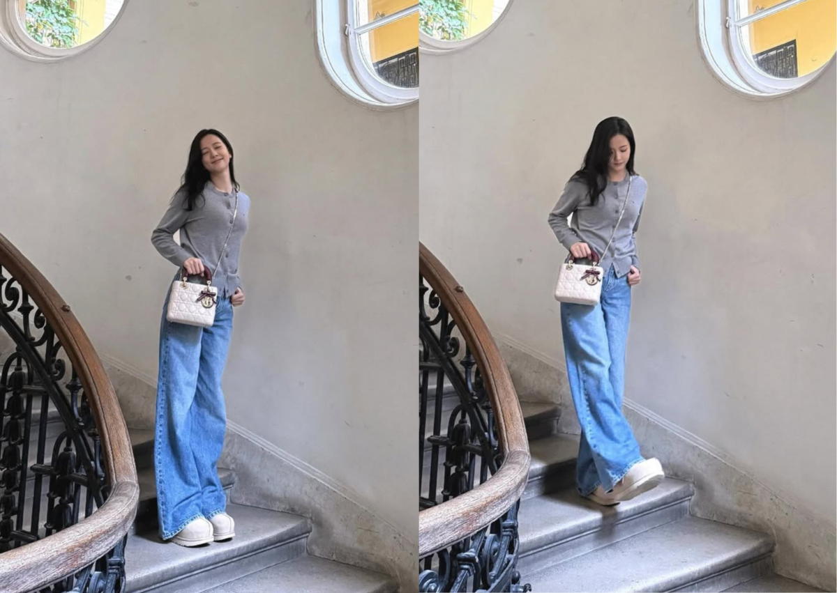 在時裝週前夕,Jisoo 率先抵達布達佩斯開逛!比起秀上的浮誇華麗禮服,這樣輕鬆簡單又舒適的私服穿搭讓 Jisoo 更為自在,身穿灰色羊毛針織衫、寬鬆版牛仔褲、雪靴,斜背一顆全新粉膚