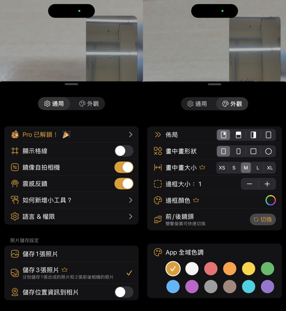 2Camera還能夠自訂義調整畫中畫邊框的顏色、大小、形狀等等,讓拍攝更加活潑多元化。