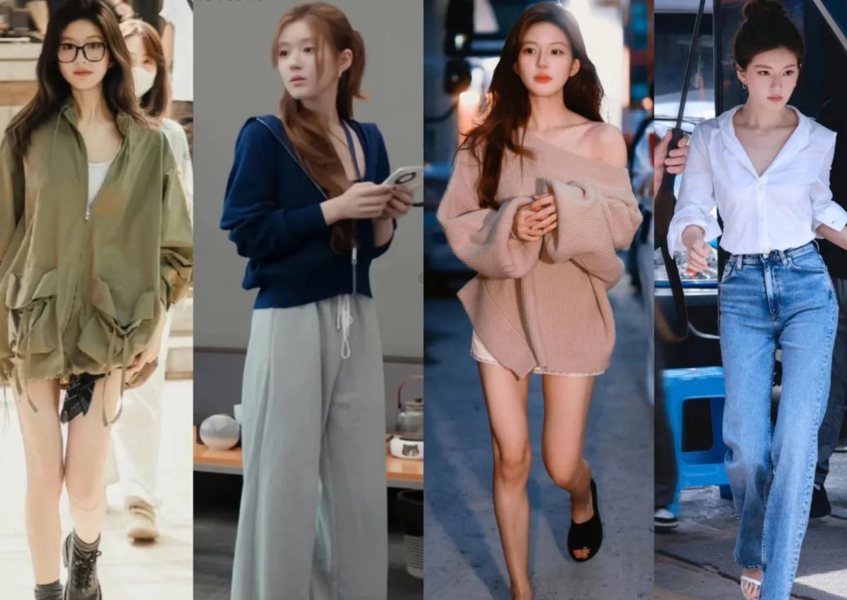 離開職場的許妍,會把「露一點點但不過度」當作平衡點,或是選擇「透膚」材質的單品,一字領或可調領口的針織上衣,搭配高腰直筒褲或乾淨的 A 字短裙,腳上就是小白鞋或低跟瑪麗珍鞋,讓鎖骨和肩線有呼吸感,整體又不會太用力,加副細框墨鏡或簡單耳飾,就能從咖啡店一路穿到超市。這幾套穿搭更是劇中最經典的「許妍式穿搭」,既鬆弛又時髦,非常適合當成日常穿搭範本。