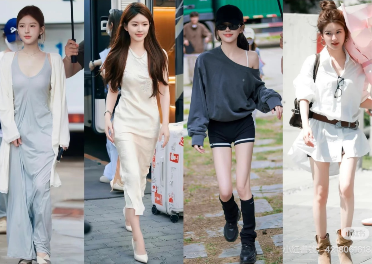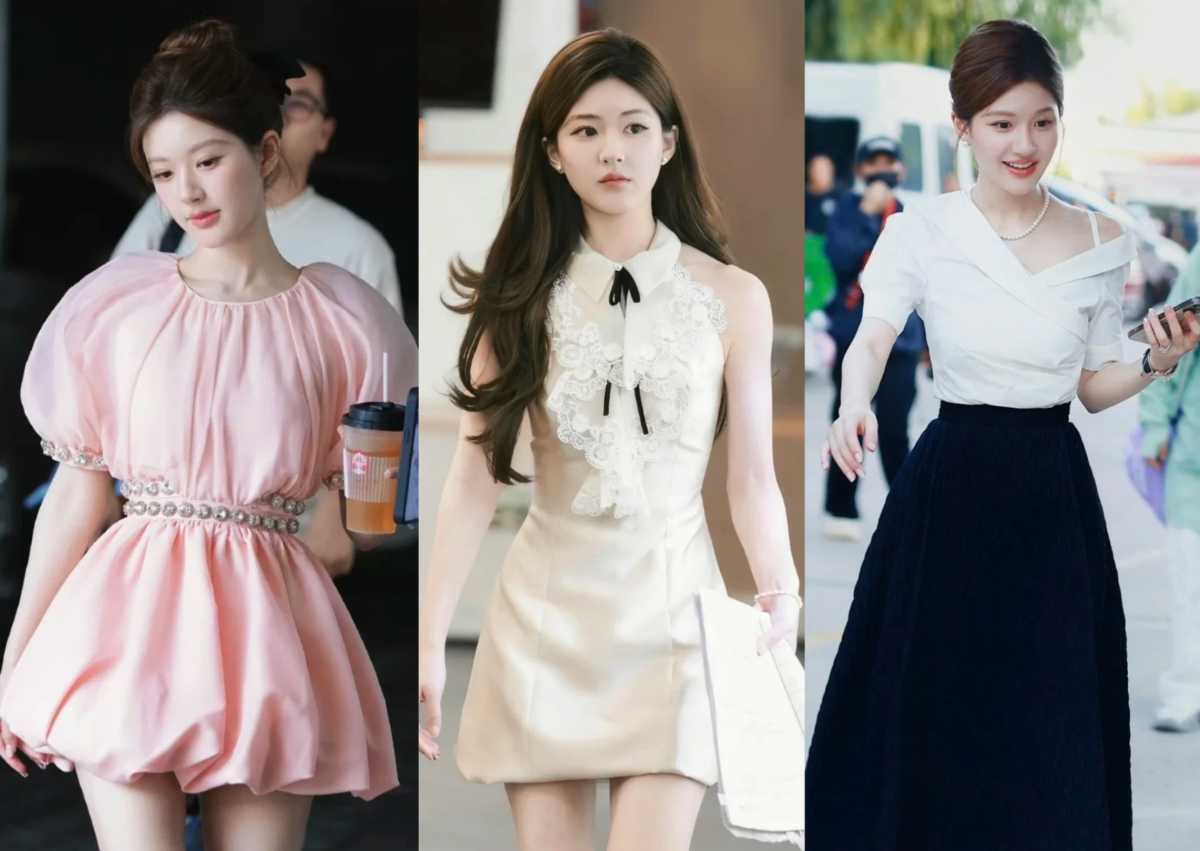 晚宴或約會時的許妍直接換上剪裁到位的小黑裙或高訂禮服等單品,裙長過膝、開衩控制在好走路的範圍,搭配垂墜耳飾與鎖骨鍊,其他配件盡量減法,讓輪廓和布料說話。從節目餐敘、大型活動到約會,這種浪漫又高級的禮服線條是她的必殺招,親自設計服裝造型的趙露思,把禮服、包款與妝髮綁成一套完整策略,難怪每次出場都很穩。
