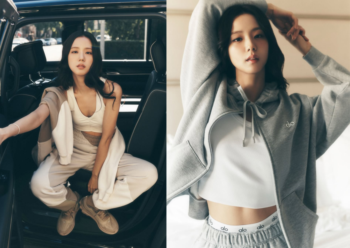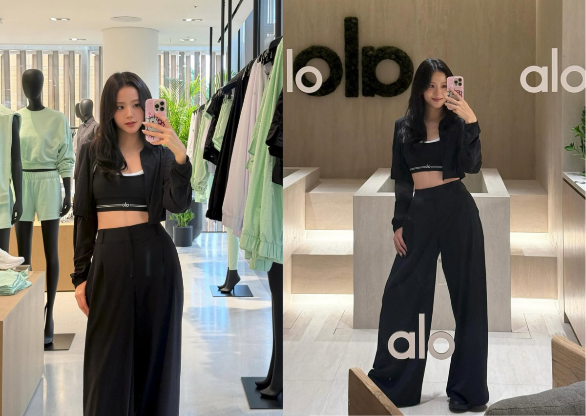 Alo 的崛起不只是靠產品本身,還仰賴一整個「明星私服日常」,身為代言人的 BLACKPINK Jisoo 除了形象照之外,私底下也曾多次以 Alo 套裝現身機場與街拍穿搭;Kendall Jenner、Kylie Jenner、Winnie Harlow 和 aespa 寧寧、TWICE Sana 也是 Alo 最具代表性的人選,不論是運動日常或街拍造型,都完整帶出「off-duty model」氛圍,Hailey Bieber、Rosé、Bella Hadid 也常被拍到上身著用 Alo,證明這不只是瑜伽服,而是明星下班後的時尚符號。