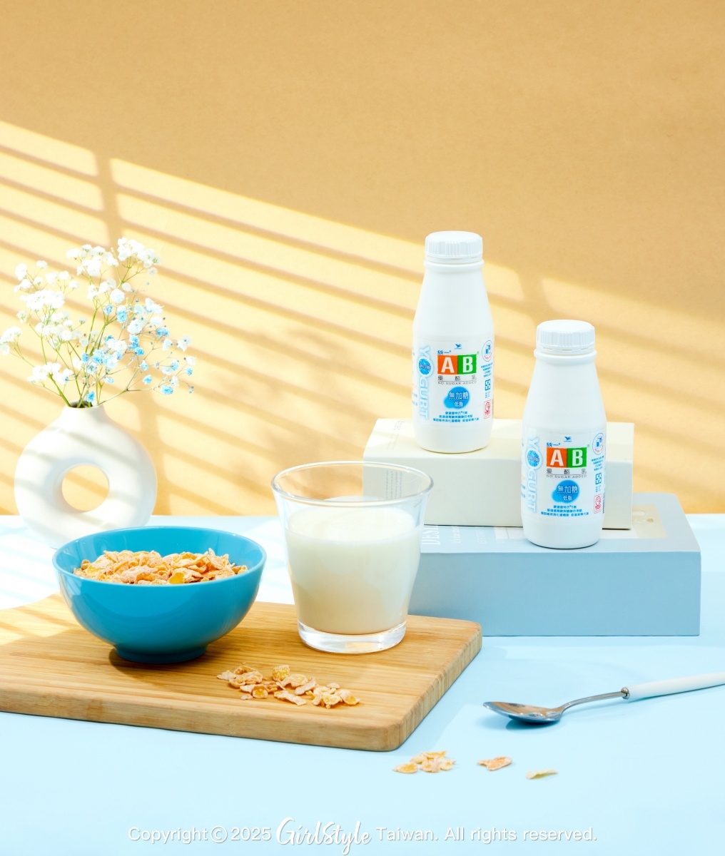 • 早上出門前,先來一瓶AB無加糖優酪乳,清爽無加糖不膩口,是養菌的第一步,雷特氏B菌,高存活率補好菌、幫助消化道機能正常運作,是編輯每天最安心的日常!