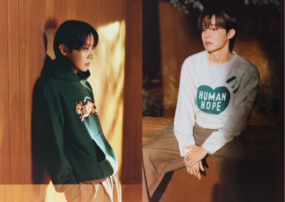 其實 J-Hope 一直都是 Human Made 的忠實粉絲,私服也能常常看到品牌單品的身影,這次合作的契機也正源自於長久以來對品牌的喜愛,攜手 Nigo 推出「HUMAN HOPE」系列,設計上加入了雙方的名字,他本人更親自參與設計發想。