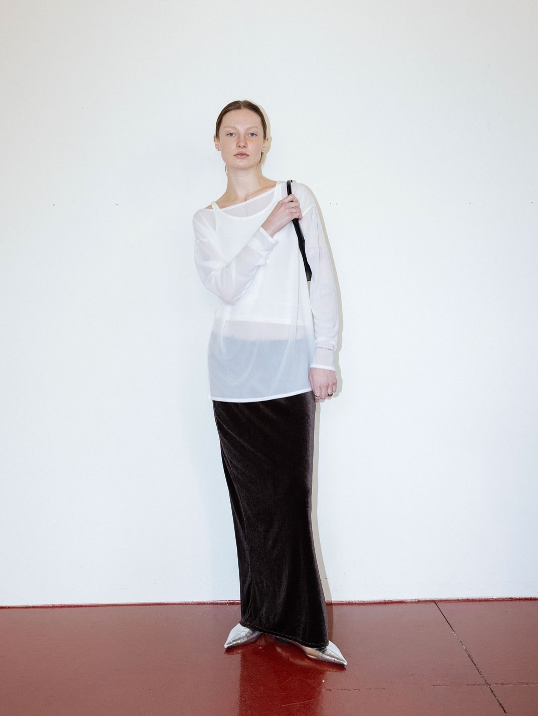長度是勝負關鍵。建議選擇中長裙讓長度落在膝蓋下方到腳踝上方之間,能穿出輕盈感。如果是天鵝絨或是緞面布料,選及地長度可以散發迷人的女人味。記得要試穿確認腰部線條有服貼身形而且裙襬自然垂墜且不蓬鬆,才能達到最佳修飾效果。