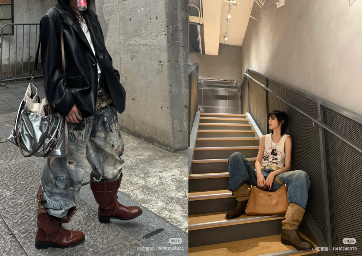 寬鬆堆疊靴,顧名思義特色是靴筒材質柔軟且寬大,穿上後會自然地在腳踝處形成鬆弛的堆疊感,或是整體呈傘狀寬鬆,這種靴款是復古風潮回歸的單品,帶有 70 年代的灑脫和慵懶感,風格更為隨性、時髦。