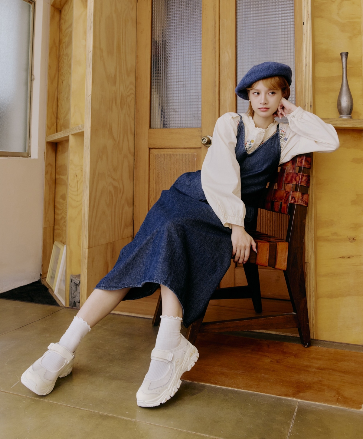 換上純白色系的 MOONHIKER 與 D’LITES HIKER,搭配荷葉領刺繡上衣與吊帶裙,立刻散發帶點復古調性的文藝氣質,延續 SKECHERS 的舒適支撐與修飾比例效果,視覺上更顯輕盈、乾淨。無論漫步文青街區、探訪獨立書店,或停留在美術館光影之間,白色瑪莉珍鞋都是最安靜卻最迷人的存在,帶出屬於妳的柔美步調。
