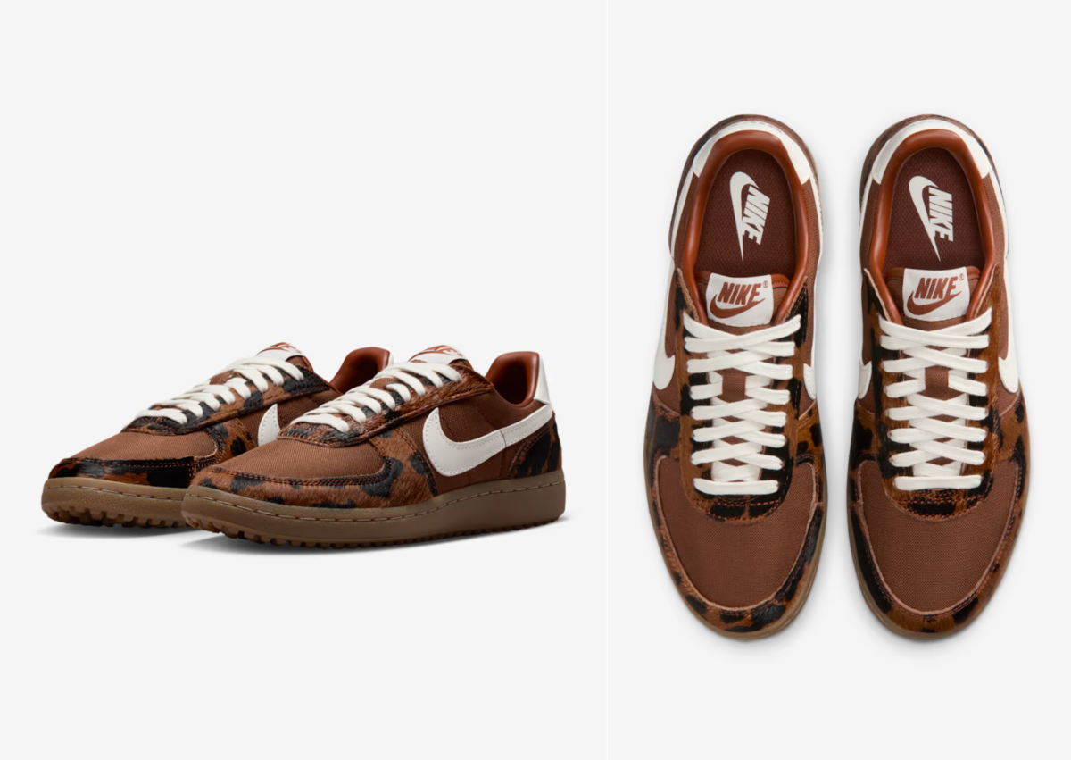 Nike Field General 挾帶著美式足球精神重磅回歸,鞋款結合帆布與動物紋毛料拼接設計,為復古橄欖球風格注入新意,最吸睛正是那顆粒感十足的鬆餅鞋底,提供穩固腳感,鞋面以豹紋拼接設計,展現強烈的復古學院與街頭混搭魅力。