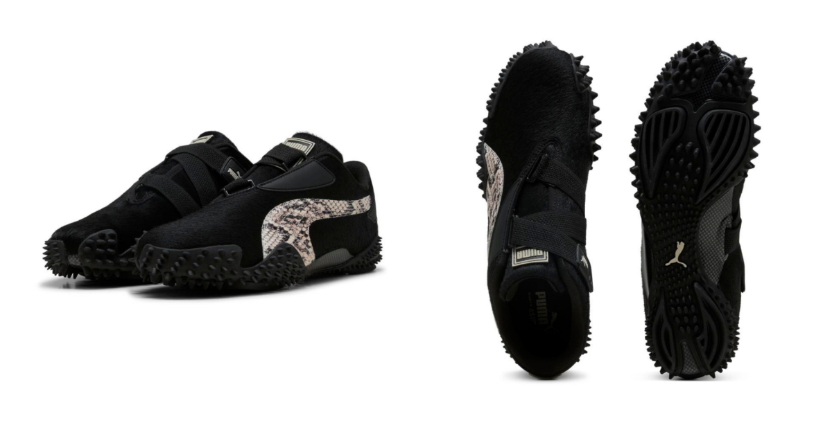 Puma X A$AP ROCKY 聯名超搶眼!以蛇紋為主角的 Mostro 怪獸鞋,延續了對細節與質感的講究,鞋面以草皮毛感材質包覆,搭配蛇紋設計的彎刀和經典鋸齒狀魔鬼氈,招牌尖刺大底收尾,營造極強的視覺前衛張力,是追求高階街頭潮流的時尚人士不可錯過的單品。