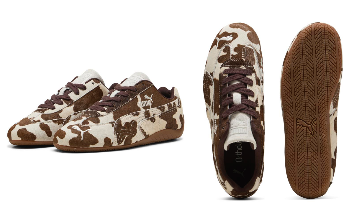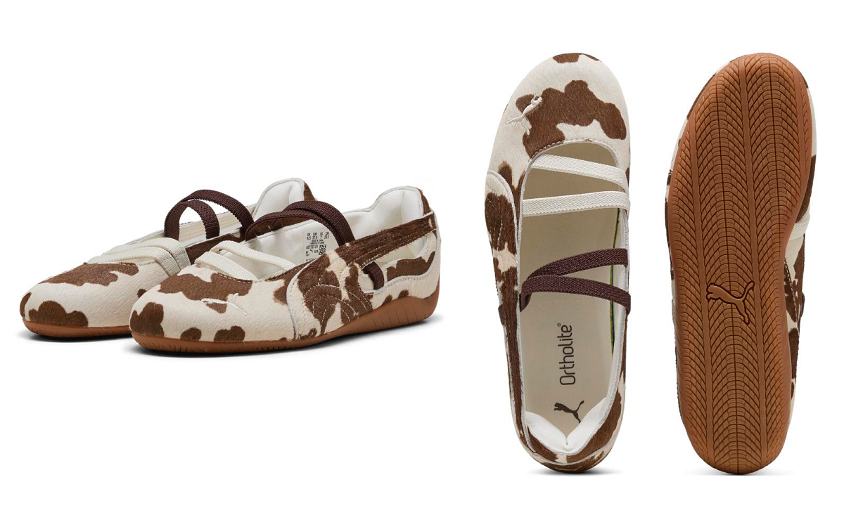 Puma 的芭蕾舞鞋款也加入了動物紋系列,以大片的白色鞋面為基底,加入塊狀的乳牛紋圖樣,印花相較不密集,整體更輕鬆活潑,這雙輕盈的薄底芭蕾舞鞋,是少女們入手動物紋潮流的絕佳選擇,讓你輕鬆走在狂野與可愛的平衡點上。