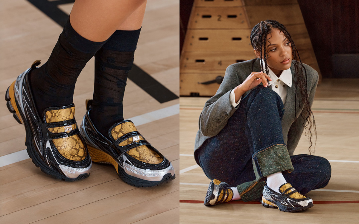 New Balance 再度攜手丹麥品牌 GANNI,,推出全新聯名鞋款 1906L,將跑鞋的輕盈與樂福鞋的精緻結構結合,鞋身以 GANNI 標誌性的蛇紋印花與鮮明配色打造強烈層次感,左右腳鞋面飾以金屬感的蝴蝶標誌,兩種風格巧思顛覆傳統,在正式和休閒中達到平衡。