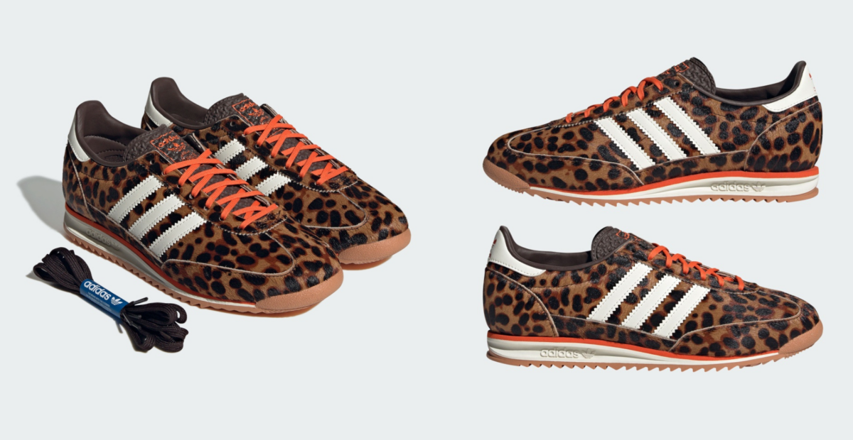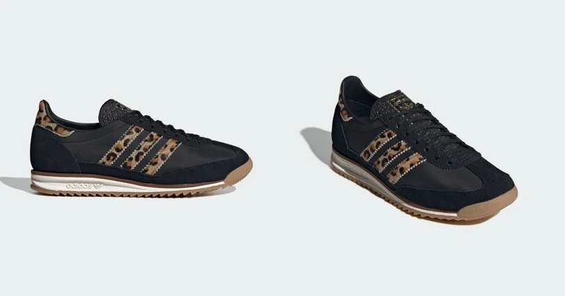 adidas Originals SL 72 OG 以低筒豹紋鞋面重現復古跑鞋的經典風格,輕盈的 EVA 中底提供避震腳感,搭配穩固的流線型橡膠底。這回推出兩種不同款式,除了整雙豹紋搭配橘色點綴之外,還有全黑設計注入一絲豹紋,將野性元素收斂得恰到好處,特別適合首次嘗試豹紋、喜愛低調不張揚的人穿著。