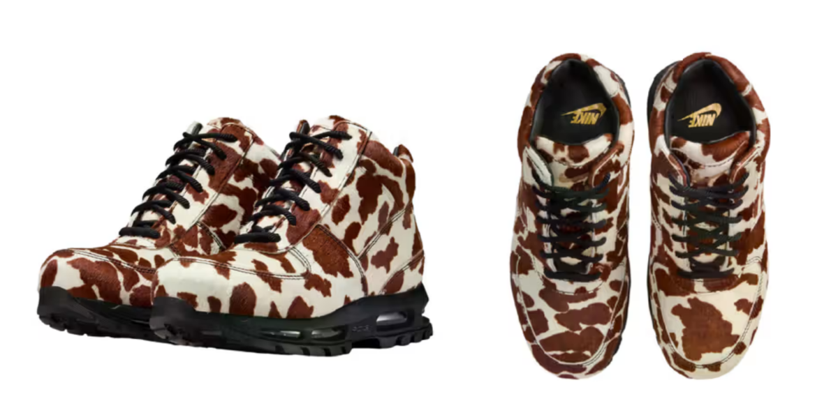 這雙熱騰騰即將發售的 Air Max Goadome 重新演繹了經典登山靴輪廓,鞋身換上搶眼的「乳牛紋」圖案,以奶油白底色襯托不規則栗棕色斑紋,極具辨識度,防水鞋身搭配紮實中底內置 Air 氣墊,凸顯其應對多變地形的實力,從城市街頭到崎嶇山徑都能一雙駕馭。