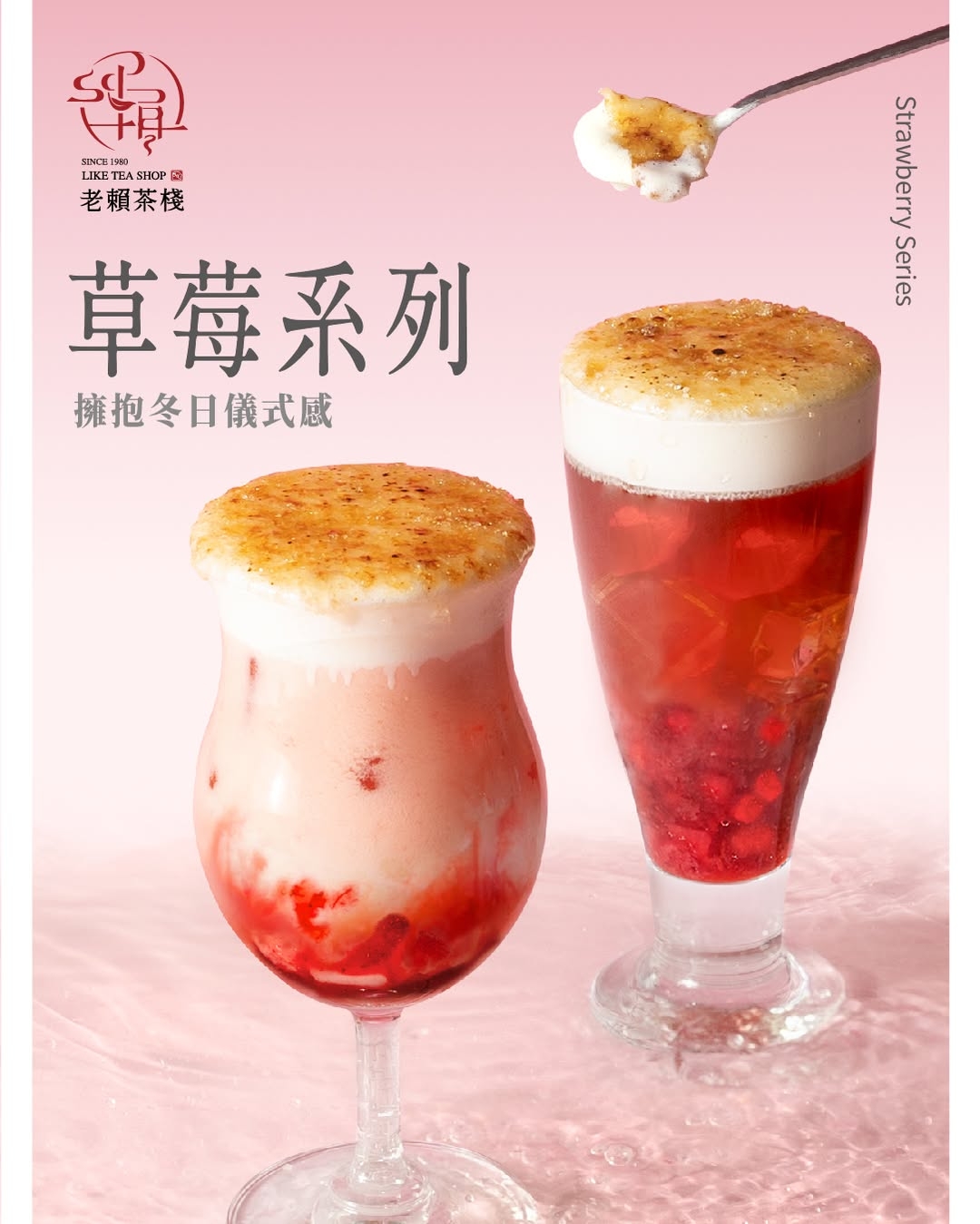 AAA張員瑛品嘗冬瓜檸檬的老賴茶棧,今天冬天颳起了粉紅旋風,不只推出烤糖奶蓋草莓奶綠/紅、草莓青茶,每一口都能嚐到果粒,還有限時粉色田園系格紋杯身,拍照起來格外可愛~