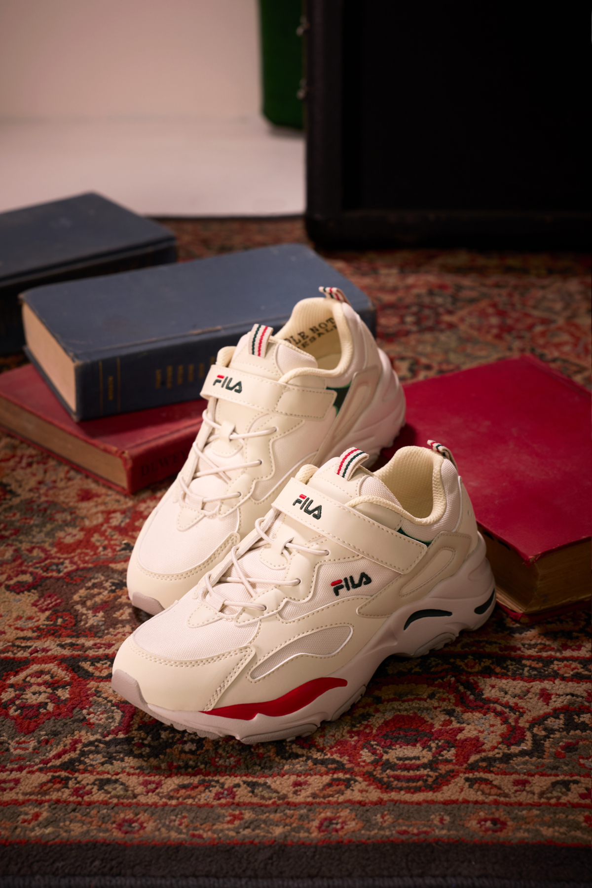 學校下課鐘聲一響,小朋友們也準備加入這場最可愛的聖誕校園派對!FILA KIDS 以 紅色、綠色、米白色 三大節慶色系,打造專屬寶貝們的聖誕學院Look。女孩換上復古紅徽章 T 恤,男孩則穿上 復古綠字母 T 恤,柔軟刷毛材質兼具舒適與保暖,再搭配可愛小熊耳朵毛帽,節慶氛圍瞬間拉滿;上腳韓國超人氣老爹鞋RAY TRACER,耐磨大底、穩定支撐與 ENERGIZED 高彈鞋墊,無論是在校園奔跑、戶外活動,或是參加聖誕慶祝派對,都能自在玩耍一整天,FILA KIDS陪伴寶貝們一起度過最歡樂、最有儀式感的聖誕節日派對。