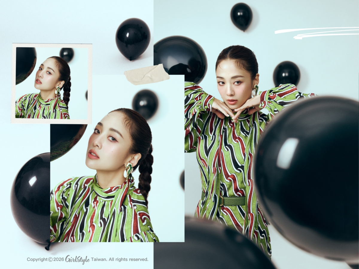 從《我愛黑澀會》出道的吳映潔,當時大家叫她「鬼鬼」,給人的第一印象總是活潑、可愛又大方自然,這套造型特別以強烈色彩、俐落剪裁與具有存在感的廓形為主,強調她的動感與直率,聚焦在她最為人熟悉、也最具代表性的「鬼靈精怪」面向,捕捉最真實、不修飾的表情與肢體,無畏的不是結果,而是敢於先踏出第一步。用氣球象徵著「自由、無畏」的感覺,讓氣球只出現在部分畫面中,像是掠過鏡頭一角、倒影、模糊前景,也象徵對未來一直保有想像與追求。