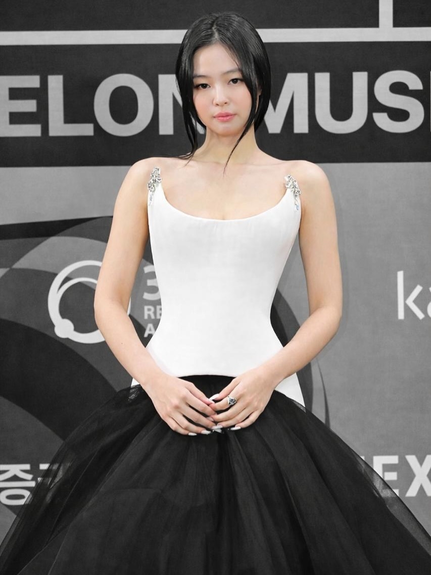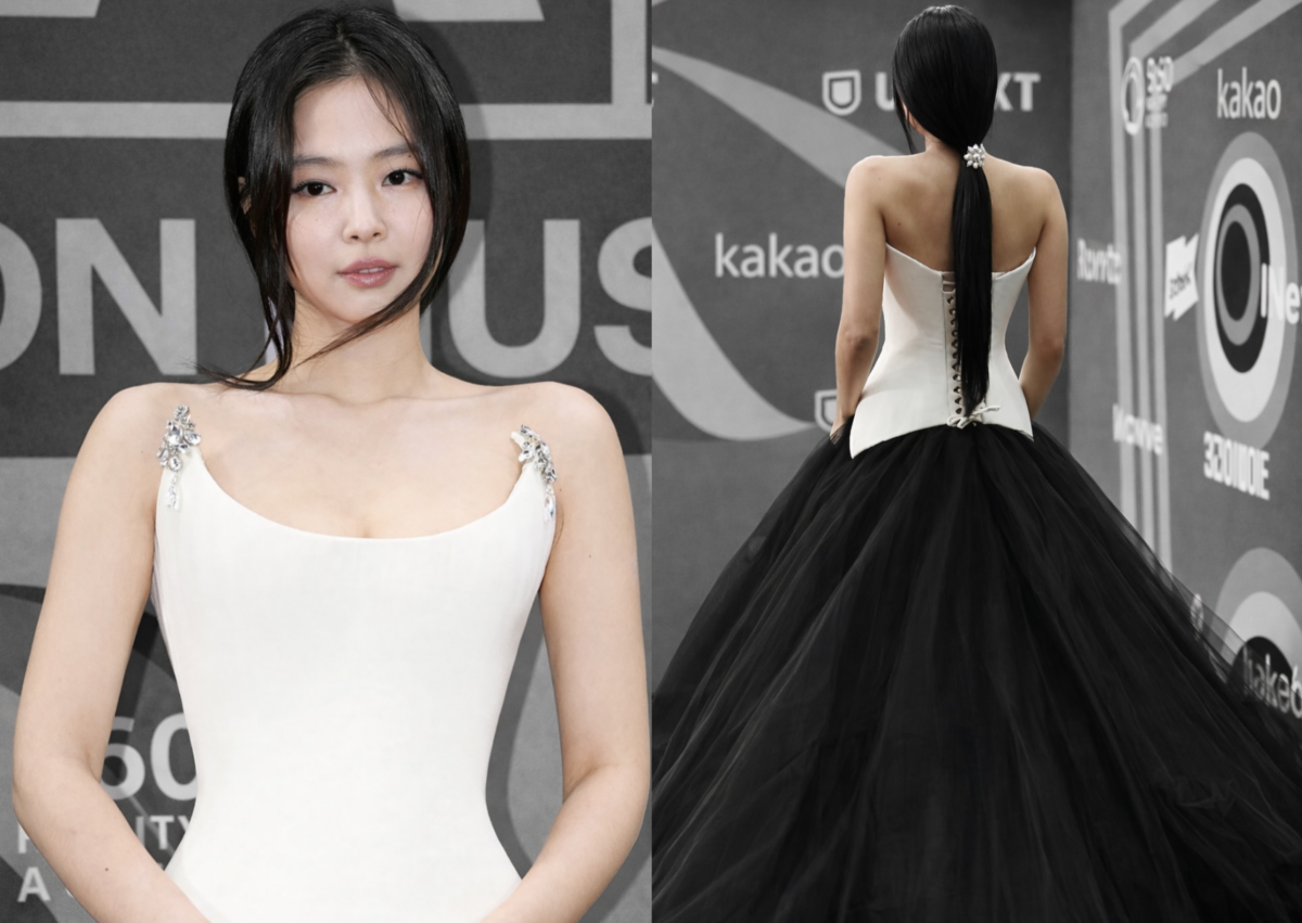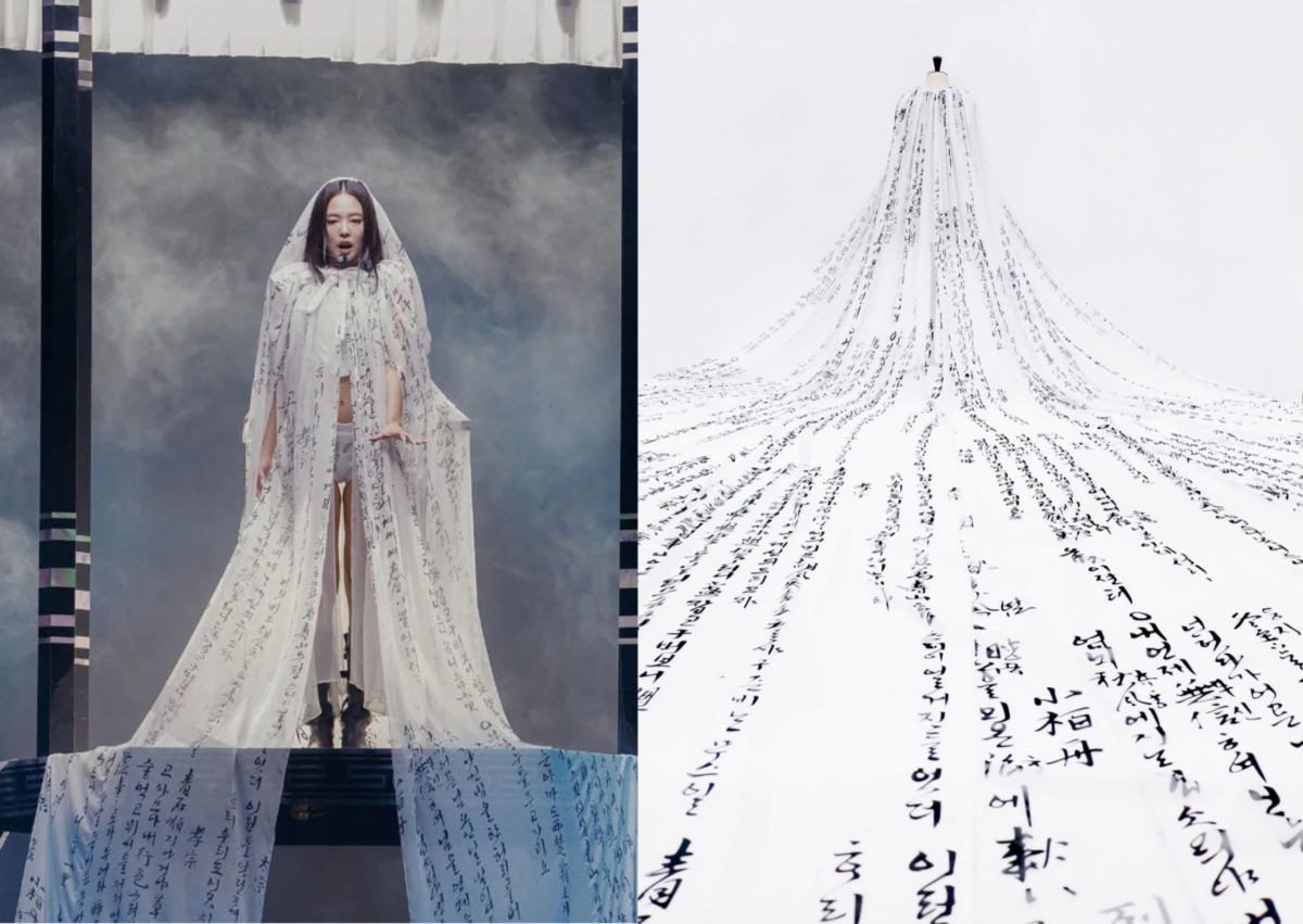 Jennie 週末在 MMA 舞台上帶來了精彩表演,服裝造型也是讓人驚呼,演出 〈Seoul City〉、〈like JENNIE〉、〈ZEN〉 三首歌曲,並換上由韓國新銳設計師品牌 LEJE 訂製服,像是長達 15 米寫滿詩歌集《青丘永言》韓文文字的白紗、由 2000 個 Jennie 韓文「제니」圓片所組成的白色夾克、結合韓國傳統服飾衣領和繫帶的馬甲、靈感取自佛國寺中石塔的禮服,聽覺加上視覺,更被譽為「史詩級表演」!