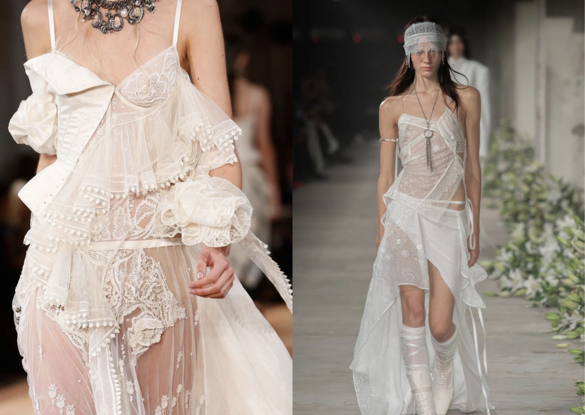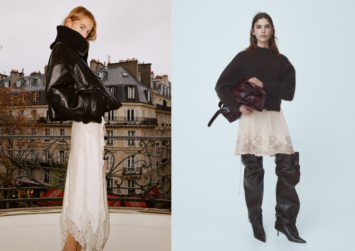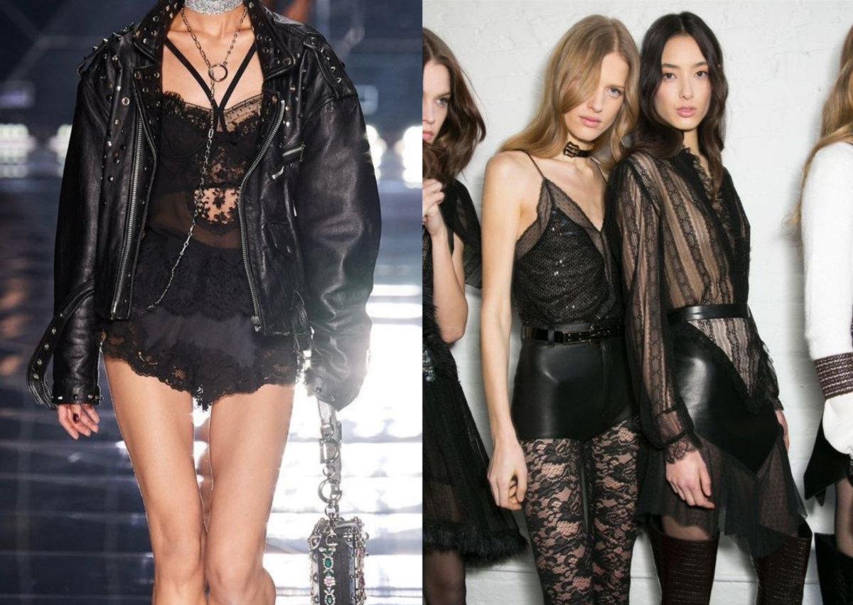 柔軟浪漫的蕾絲搭配隨性不羈的皮革,看似碰撞又突兀,但這又何嘗不是最時髦混搭的搭配了?還是編輯我最推薦的層次搭法,選擇一件帶有高領或維多利亞立領設計的全蕾絲襯衫,外面隨意套上一件復古皮革夾克,當細緻的花邊從粗獷的袖口與領口探出頭來,那種衝突的美感最搶眼,像是在告訴全世界「我有溫柔的心,也有堅強的盔甲。」