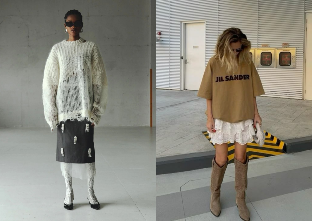 顧名思義,讓蕾絲像慵懶藝術般呈現,這是個充滿法式慵懶的穿搭方向,重點在於重量感的平衡,用簡單的單品去搭配繁複的蕾絲,像是穿著一件寬大到能蓋住臀部的粗針織羊毛衫,或是簡單純色上衣,搭配一條長及腳踝的絲緞蕾絲長裙,視覺延伸感會顯得修長且高級許多。