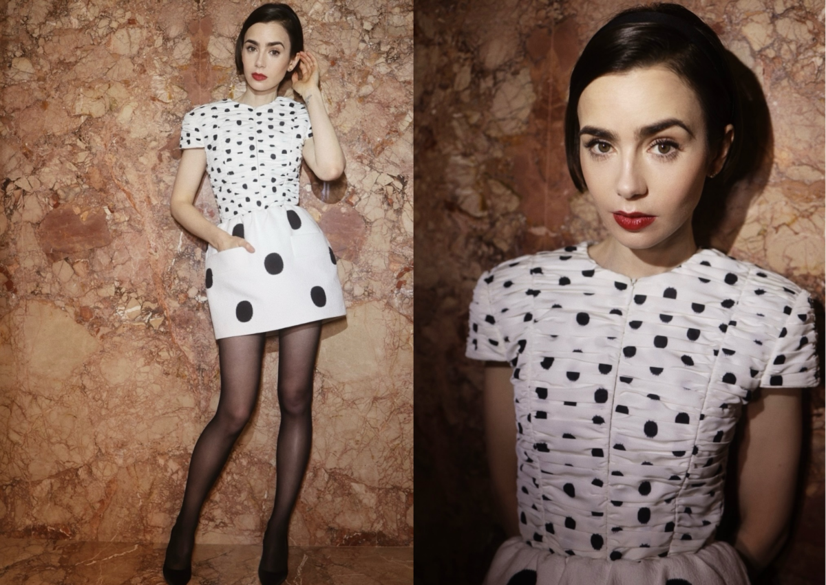 Lily Collins 禮服 06:PATOU 波點短洋裝